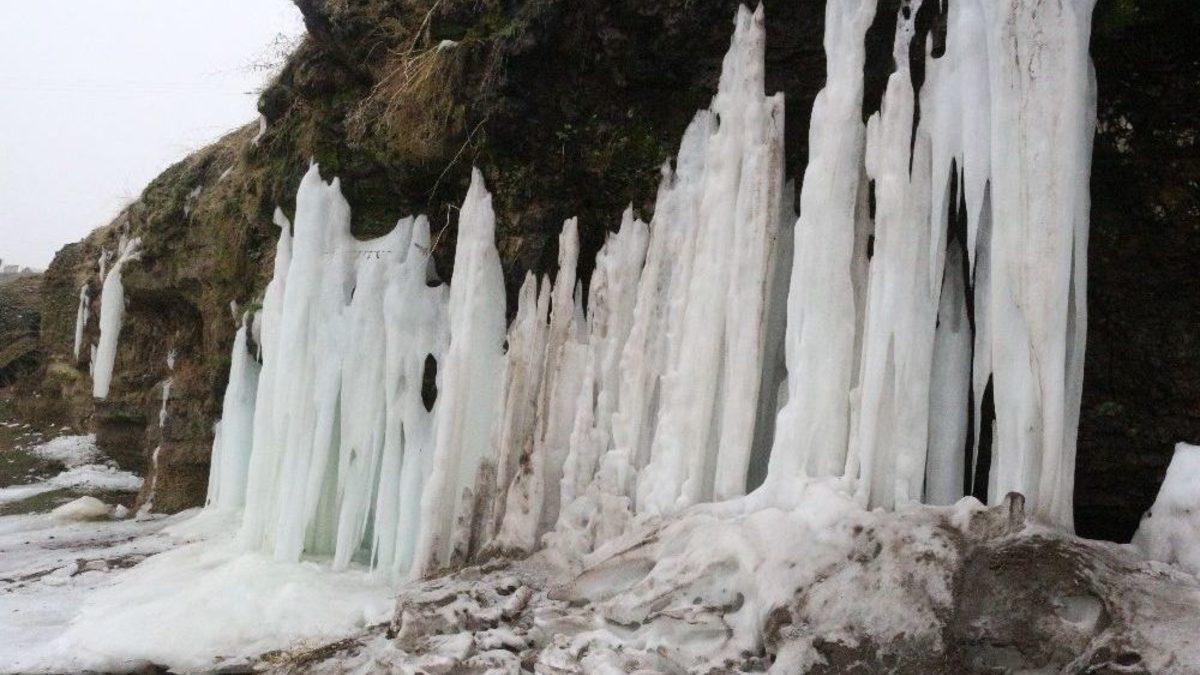 Dondurucu soğukların etkili olduğu Ağrı’da buz tutan Yolluyazı Köyü Şelalesinin görüntüsü Pamukkale Travertenlerini andırdı.Sibirya soğuklarının etkisini sürdürdüğü Doğu Anadolu Bölgesinde günlük yaşam olumsuz etkileniyor. Geceleri hava sıcaklıklarının sıfırın altında eksi 15 derecenin üzerinde ölçüldüğü Ağrı’da, Yolluyazı Köyü‘nde bulunan şelale tamamen dondu. 10 metreyi bulan buz sarkıtlarının oluştuğu şelale doğa ve fotoğraf tutkunlarına görsel şölen sunuyor. Havaalanına yakın olan şelaleyi zaman zaman yerli ve yabancı turistlerde ziyaret ediyor. Yaz mevsiminde piknik yapan vatandaşların en çok uğradığı gözde mekânlardan biri olan şelale, kışında soğuk hava ile birlikte metrelerce uzunluğunda oluşan buzlar ziyaretçilerine doyumsuz anlar yaşatıyor. Köyde yaşayan vatandaşlarda soğuk havaya aldırış etmeden köyün dışında bulunan şelaleye gelerek bir yandan geziyor, bir yandan da bol bol fotoğraf çektirerek sosyal paylaşım sitelerinde paylaşıyorlar. Öte yandan köylüler buz tutan şelaleyi ‘Pamukkale Travertenlerine’ benzetiyor.Şelalenin fotoğrafını çekerek anı ölümsüzleştiren Muhammed Sefa Seyhan, kayaların neredeyse tamamen buz tuttuğunu ve buz sarkıtlarının boyunun 10 metreyi bulduğunu söyledi.