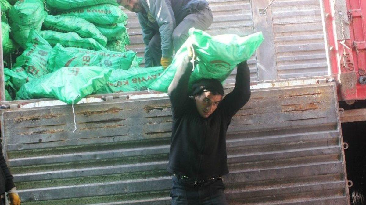 Soğuk havaların etkili olduğu Ağrı’da işçiler Tır’larla gelen kömürleri boşaltarak evlerine ekmek götürme mücadelesi veriyor.Sibirya soğuklarının yaşandığı Ağrı’da son zamanların en soğuk ve en uzun kışı yaşanıyor. Kente Tır’larla gelen kömürleri sırtında boşaltan işçiler evlerine ekmek götürme mücadelesi veriyor. El ve yüzleri kömür tozu tutan işçiler soğuk havaya rağmen çalışıyorlar. 29 Ekim Caddesinde kömür boşaltan işçilerden Hidayet Acar, kışın çok çetin geçtiğini havaların soğuk olmasından dolayı çoğu zaman çok zor şartlarda çalıştıklarını söyledi. Dondurucu soğuklara rağmen sabahın erken saatlerinde kömür boşalttıklarını söyleyen Acar, ”İlk önce bunu diyeyim, Ağrı çok soğuk donuyoruz. Burada iş imkânı yok, haftada bir iki kez kömür boşaltma işi oluyor. Kömür satıcıları bizi çağırıyor, bizde gelip kömürü boşaltıp geçimimizi sağlıyoruz” dedi.Ağrı’da yapabilecekleri başka işler olmadığını aktaran Acar, “Burada yapabileceğimiz başka bir iş yok, her gün iş bulamıyoruz. İş olduğu zaman kömür satan esnaf bizi çağırıyor, haftada üç gün iş oluyor. Çalıştığımız zaman yevmiye olarak 50-60 Türk lirası alıyoruz. İş varsa çalışıyoruz, olmazsa açız” ifadelerini kullandı.