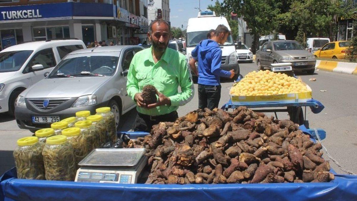 Ağrı’da doğada kendiliğinden yetişen ve birçok hastalığa iyi geldiği bilinen uçkun köküne vatandaşlar yoğun ilgi gösteriyor.Ağrı’da Mayıs ve Haziran aylarında dağlarda ve kırsal alanlarda yetişen uçkun kökü vatandaşlar tarafından toplanılarak şehir merkezinde tezgâhtarlık yapan kişilerce satılıyor. Uçkun kökünün vatandaşlar tarafından başta kanser, şeker ve çeşitli hastalıklara iyi geldiği ifade ediliyor. Yayla muzu olarak ta bilinen uçkun yüksek kesimlerde ve dağlarda yetişiyor. Alpaslan Mahallesi’nde ikamet eden Mehmet Arpacıoğlu adlı vatandaş Eski Van Caddesi’nde uçkun kökü satarak evine ekmek götürüyor. Uçkun köküne vatandaşların yoğun ilgi gösterdiğini söyleyen Arpacıoğlu, satışlardan oldukça memnun olduğunu söyledi. Uçkun kökünün toplanmasının oldukça zahmetli olduğunu dile getiren Arpacıoğlu, “Biz uçkunu köylerde yaşayan vatandaşlarımızdan alıyoruz. Zaten vatandaşlar tarafından uçkun ve kökünün birçok hastalığa iyi geldiği biliniyor. Yıllardır araba tezgâhtarlığı yapıyorum, her yıl bu zamanlar uçkun kökü ve çeşitli bitkiler satıyorum. Vatandaşlarımızı da düşünerek elimizden geldiği kadarıyla uygun bir fiyata satmak için gayret gösteriyoruz” dedi.