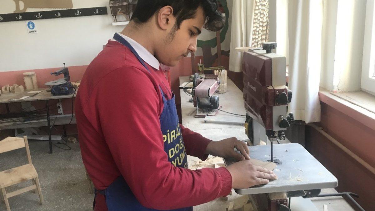 Oyuncak atölyesinde çalışan Çocuk Gelişimi sınıfı öğrencisi Berkay Kurt ise, “Hayal becerilerimizi geliştirerek çocuklarımıza oyuncaklar üretiyoruz, severek yaptığımız ahşap oyuncak atölyemizde daha çok oyuncak yaparak daha çok çocuğa ulaşmayı hedefliyoruz” ifadelerini kullandı.