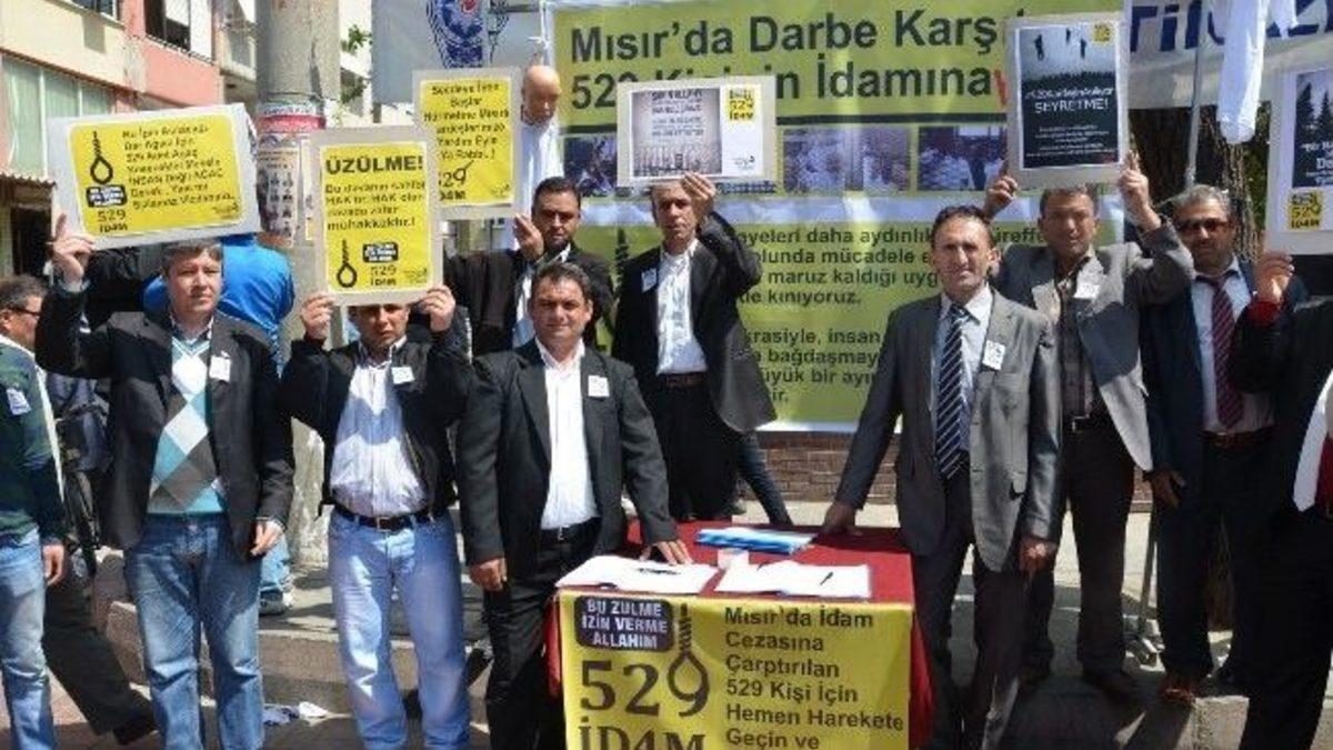 Adalet ve Kalkınma Partisi Akhisar İlçe Teşkilatı Gençlik Kolları, Yeni Cami önünde öğle namazı ardından düzenlediği basın açıklaması ile Mısır’da 529 kişiye verilen idam cezasını protesto etti.AK Parti İlçe Başkanı İsmail Hakkı Şenyiğit’in de katıldığı protesto da basın açıklaması yapan Gençlik Kolları Başkanı Süleyman Çakar; “Mısır’da yapılan alçakça bir darbe girişimi sonrasında seçilmiş irade silahla ve zorla iktidardan indirilmiştir. Halkın seçtiği yönetim hiçbir haklı gerekçe gösterilmeksizin küresel güçlerin oyunları ile görevden el çektirilmiştir. Bu demokrasiye ihanettir. Bu insan haklarına ihanettir. Bu mısır halkının iradesine yapılmış büyük bir saldırıdır. Yapılan bu darbe sonucunda iktidara gelenler demokratik bir seçim sözünü vermişler fakat bu sözlerinde de durmadıkları gibi mısır halkına zulmetmişlerdir. Mısır’ın meşru Cumhurbaşkanı Muhammed El-Mursi hala hukuksuz şekilde zindanlarda tutulmaktadır. Yapılan zulümler bununla da sınırlı kalmamış yüzlerce insan haksız yere tutuklanıp ceza evlerine konulmuştur. Bütün dünya Mısır’da yaşanan bu insanlık dramını izlemektedirler. Son olarak kurulan düzmece mahkemeler kardeşlerimize eziyetin adresi olmuş tek gayesi Vatanına hizmet etmek olan bu insanları idam cezası ile cezalandırılmıştır. Mısır mahkemelerince açıklanan bu karar tüm dünyada geniş yankı uyandırmış ülkemizde de olduğu gibi bütün dünyada açılan kınama kampanyalarında yaklaşık 250 milyon insan bu karara tepki göstermiştir.Bizler de AK Parti Manisa İl Gençlik Kolları olarak partimize üye olan 15 bin genç kardeşlerimiz ile bu zulmü, bu hukuksuz kararı kınıyoruz. Hukuksuzca verilen idam cezalarının bir an önce kaldırılması ve tutuklu olan Mısır’lı kardeşlerimizin bir an önce serbest bırakılmalarını diliyoruz. Uluslararası insan hakları örgütlerini Birleşmiş Milletler Teşkilatını, Avrupa Birliğini derhal bu insanlık dışı uygulamalara son verilmesi için girişimde bulunmaya çağırıyoruz” dedi.