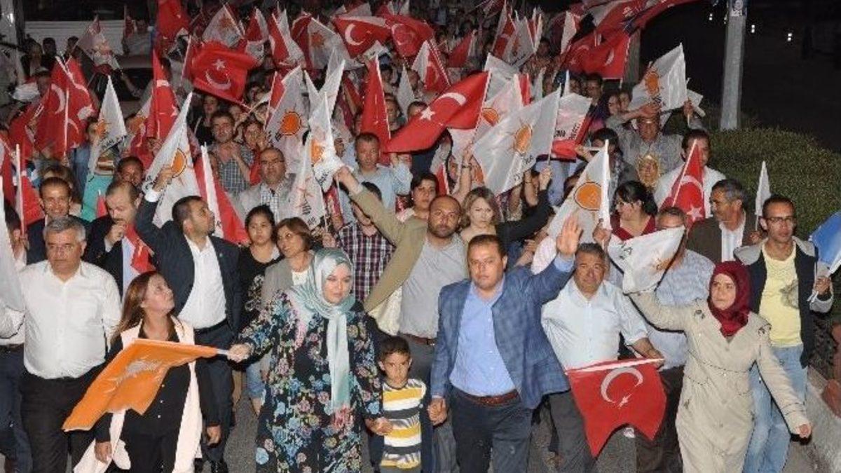 7 Hazirandaki Genel seçimlere sayılı günler kala AK Parti Nazilli İlçe Teşkilatı seçmenlerine yemek verdi. Yaklaşık bin kişinin katıldığı yemeğin ardından 4 bin Ak Parti’li yürüyüş gerçekleştirdi.Nazilli Kapalı Çarşamba Pazaryerinde düzenlenen yemeğe AK Parti İl Başkanı Ömer Özmen, Nazilli İlçe Başkanı İmran Acar, AK Parti Kadın Kolları ve Gençlik Kolları Başkanları ve yönetim kurulu üyeleri, milletvekili adayları ile sandık başkanları, sandık görevlileri, muhtarlar ve partililer katıldı.Yemekte konuşan AK Parti İl Başkanı Ömer Özmen, AK Parti’nin iktidara geliş ve bugüne kadar ki süreci ile ilgili açıklamalarda bulundu. Özmen, “Biz iktidara gelmeden önce ekonomik krizler almış başını gidiyordu. Yasaklar artmış insanlarımız sıkıntı içerisindeydi. Gecelik faizler yüzde 50 binlere çıkmıştı. Enflasyon canavarı almış başını gitmişti. Anayasa kitapçıklarının fırlatılması ile bir gecede dolar, mark zirve yapmıştı. Bu tablo üzerine 3 Kasım 2002’de milletimiz kendi bağrından çıkan bir evladını Kurucu Genel Başkanımız Recep Tayyip Erdoğan’ı kendine Başbakan seçmiştir. 2002 yılından 2007 yılına kadar ne yapmak istediysek ya mahkemelerden ya da Cumhurbaşkanından veto yedik. Bütün yönetmelikler Danıştay tarafından iptal ediliyordu. 2007 yılında Abdullah Gül’ün Cumhurbaşkanı seçilmesi ile günümüze kadar ki sürede bu ülkeyi ayağa kaldırmayı başardık. Ülkenin kalkınmasının ilk yarısı 7 Haziran akşamı sona erecek. 7 Haziran sonrasında ne yapıyoruz Yeni Türkiye için 2. yarıyı başlatıyoruz. 2. yarıyı başlatmak tabi ki çok kolay olmadı. 2014 yerel seçimleri, 2014 Cumhurbaşkanlığı seçimleri ve 3 gün sonra yapacağımız genel seçimleri birbirine bağlı çok önemli 3 seçimdi. 3 tanesinden 2 tanesini milletimizin iradesiyle kazandık. Bu başarıyı kolay yakalamadık ve meşakkatli yollardan geçtik" dedi.