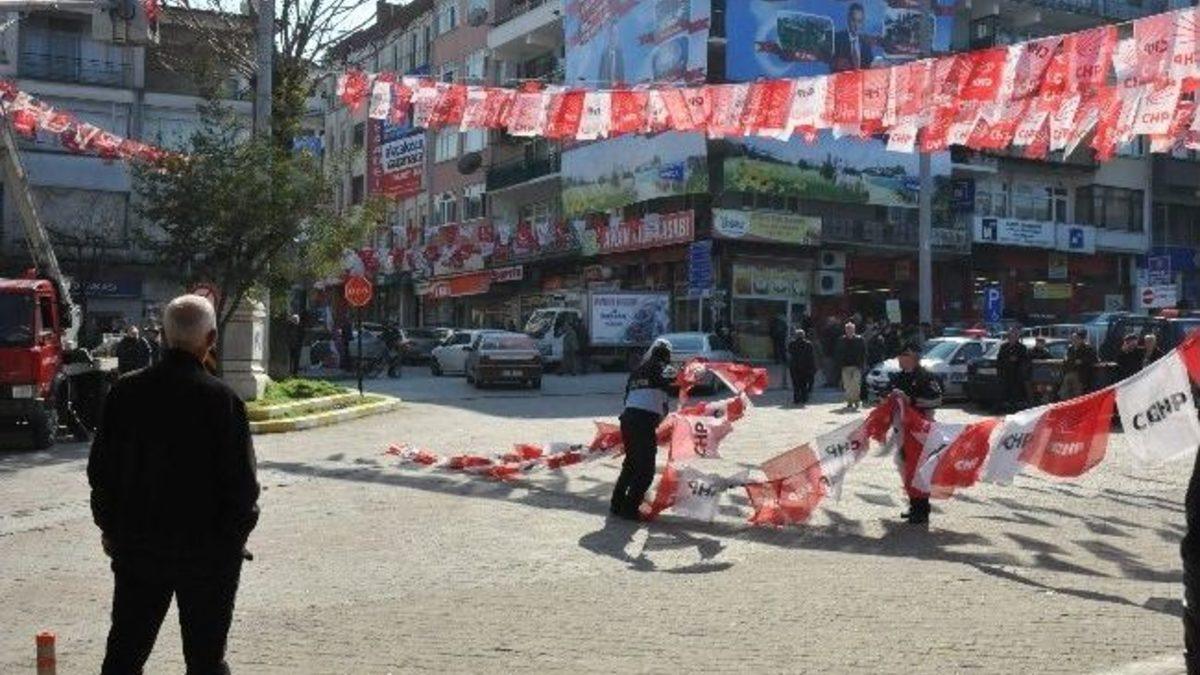 Düzce'nin Akçakoca ilçesinde partilerin karşıdan karşıya asılan bayrak krizine ilçe seçim kurulu son noktayı koydu.Akçakoca'da, ilçe seçim kuruluna yapılan bayrak şikayetinde karar verildi. İlçe seçim kurulu gergi şeklinde asılan tüm parti bayraklarının indirilmesine karar verdi. Karar üzerine belediye ekipleri gergi şeklinde asılan tüm siyasi partilerin bayraklarını indirdi.