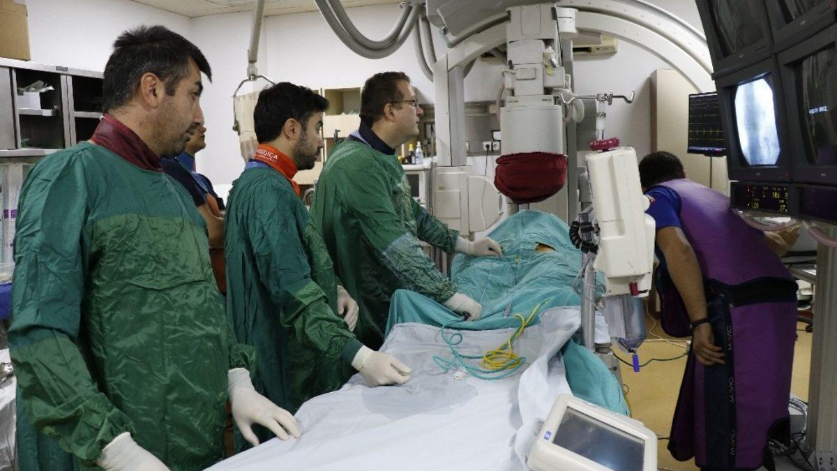 "40 yaşında hastamız beyin kanaması nedeniyle beyin cerrahisinde tedavi görürken akciğerlerine pıhtı atarak sağ akciğer damarının tamamen tıkandığını gördük. Beyin kanaması geçirdiği için kan sulandırıcı ilaçları veremedik. Bizde bunun üstüne acil olarak genel durumu bozuk olan hastamızı kateter laboratuvarına aldık. Önce tıkalı olan damarımızı görüntüledik. Görüntüledikten sonra kateterlerimizle bizzat pıhtı olan yerin içine girerek pıhtıyı parçalamaya çalıştık. Parçayı daha küçük parçaya ayırdık ve aspirasyon dediğimiz çekme tekniğiyle bir kısım pıhtıyı da geri almaya çalıştık. Daha sonra da pıhtının içerisine düşük dozda kan sulandırıcı pıhtı eritici ilacımız verdik bu şekilde hastanın hayata tekrar tutunmasına katkıda bulunduk. Normalde bunlar çok riskli işlemler. Acil müdahale edilmesi gereken tedavi yöntemleri. Çok nadir yaptığımız genelde pıhtı eritici ilaçlar verdiğimiz hastalık. Ama burada beyin kanaması geçirdiği için pıhtı eritici ilaç veremediğimiz için mecburen bu yöntemi hastaya uygulamak zorunda kaldık. Başarılı olduk. Hastanın genel durumunda da pıhtının erimesiyle birlikte genel durumunda da hızlı bir düzelme gözlendi."