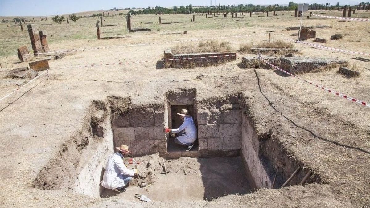 Bitlis’in Ahlat ilçesinde bulunan ve Anadolu’nun Orhun Abideleri olarak da adlandırılan tarihi Selçuklu Mezarlığı’nda 178 adet akıt mezar tespit edilirken, yer altındaki bu oda mezarlar büyük dikkat çekiyor.Boyları 4,5 metreye kadar varan, üzerindeki yazı ve şekillerle her biri sanat eseri niteliği taşıyan mezar taşlarını bünyesinde barındıran tarihi mezarlıktaki kazı, restorasyon ve konservasyon çalışmaları Van Yüzüncü Yıl Üniversitesi (YYÜ) Sanat Tarihi Bölümü Öğretim Üyesi Prof. Dr. Recai Karahan başkanlığında devam ederken, mezarlık içerisinde tespit edilen akıt mezarlar ise oldukça ilgi uyandırıyor.Selçuklu Mezarlığında gün ışığına çıkartılan akıt mezarlar hakkında gazetecilere açıklamalarda bulunan Prof. Dr. Recai Karahan, akıt mezarların Anadolu’daki örneklerinin nadiren Ahlat’ta görüldüğünü vurgulayarak, "Akıt, Prof. Dr. Haluk Karamağaralı ve Şerif Baygun’un anlatımlarıyla bir yeraltı mezarlığıdır. Bunlar yöre halkının deyimlemesi ve isimlendirmesiyle anılmış, daha sonra da bilim insanları bu şekilde kullanmışlar. Akıtları biz yer altı, oda mezarları olarak düşünebiliriz. Bunların kökeni Altay’larda Pazırık kurganlarına kadar gitmektedir. Fakat onlarla bunların arasında farklılık var. Onlarda üzerine toprak yığılarak ve ölü gömme geleneklerine göre o günün beylerini, üst düzey kişilerinin mezarları olarak karşımıza çıkıyor ve bazı eşyalarıyla birlikte gömüldüğünü görüyoruz. Anadolu’da ise örneklerinin nadiren burada gördüğümüz Ahlat Selçuklu Mezarlığında ise böyle bir eşyalarıyla gömme geleneğini görmüyoruz. Ama bol miktarda iskelete rastladık. Son yaptığımız çalışmalarda 4 metreye 4 metrelik akıt alanda 15’e yakın cenaze kalıntısı, kemik ve 15 tane kafatası tespit ettik. Bunların bir kısmını Ankara’ya gönderip ölüm nedenlerini tespit etmeye çalışacağız. Diğerlerini de kazı evimizde korumaya çalışıyoruz. 210 bin metre karelik bu alanımızda 178 adet akıt tespit ettik. Yeraltı incelemelerimiz ve jeoradar taramalarımızdan sonra bunlar ortaya çıktı. Bunların 11 tanesi DAP İdaresi ve Kültür Bakanlığımızın iş birliğiyle restore edilerek, korumaya alındı. Bizde şimdiye kadar 5 tane akıt açmış durumdayız. Akıtların gizemleri ve sırları henüz çözülebilmiş değil. Herhangi bir kitabeye ya da çok detaylı buluntulara rastlamadığımız için bunları zaman zaman kazmaya ve gün ışığına çıkartmaya çalışacağız" dedi.Bu mezarları Orta Asya’daki kurganların ve yeraltı mezarların Anadolu’daki bir devamı olarak gördüklerini ifade eden Karahan, "Ama İslami usullere dönüşmüş bir geleneğin devamıdır. Orada mezarlar belli bir düzene göre kurulurken buradaki mezarlar İslami usullere göre defnedilmiş. Kafatasları ve gömülüş yönleri bunu gösteriyor. Bir geleneğin devamı olarak Ahlat’ta yaşatılmış. Daha sonra da Anadolu Selçuklularında ve Osmanlı’da kümbet ve türbe şeklinde devam etmiş. Bu kripta dediğimiz yer altındaki cenazenin olduğu kısmı bu akıtlar temsil ediyor. Daha sonraki dönemlerde bunun üzerini bir mescit şekilde, kıble yönünü belirtecek hafif mihrabı olan üst kısımlarda yerleştirilmiş daha sonra da böyle devam etmiş. Bunun örneklerinden birini Ahlat’taki Emir Bayındır Kümbeti’nde görebiliyoruz. Orada yer altında kripta dediğimiz, mumyalık ya da cenazelik kısmı üzerinde de mescide benzer bir örtü sistemi bulunmaktadır. Burada arka kısımda görmüş olduğunuz şu kapı şeklindeki kısım cenaze yerleştirildikten sonra burayı terk ederken oraya bir kapı yapılıyor ve bu kapı büyük bir taşta olabiliyor. Genellikle kapılar eğilerek girmek için basık yapılmış bu da ölüye olan saygıdan dolayıdır. Buda İslami usullere göre olan bir anlayıştan kaynaklanmıştır. Burada örülmüş olan bir kapıya denk geldik. Sağlam bir şekilde günümüze kadar gelmiş. Devamına bakacağız. Nereye açılır, başka bir kapısı var mı, başka yere açılır mı gibi soruların cevabını da yapacağımız çalışmalar sonunda ortaya çıkartmaya çalışacağız" şeklinde konuştu.Akıt nedir?Akıt; yöre halkının kullandığı bir isim olup bu terimin mimari terminolojide tam olarak karşılığı yoktur. Ancak farklı yıllarda bölgede incelemelerde bulunan A. Şerif Beygu ile Prof. Dr. Haluk Karamağaralı yöre halkının benzer yapılar için kullandığı akıt sözcüğünü bu yapılar için de kullanmışlardır.Anadolu’da örneklerine pek rastlanmayan bu mimari mezar türü ilk defa A. Şerif Beygu1 tarafından tanıtılmış ve Haluk Karamağaralı tarafından bazı örneklerin kazısı yapılarak mimari durumları kısmen ortaya çıkartılmıştır. 2011 yılından itibaren başlayan kazılarla 5 adet akıt kazısı gerçekleştirilmiş, ancak bunların hiçbirinin günümüze sağlam ulaşamadığı tespit edilmiştir. 2018 yılı kazılarında mezarlığın kuzeyinde kazısı yapılan akıtta zemine ulaşılarak mezarın cenazelik kısmı açığa çıkartılmıştır. Cenazelik kısmındaki iskeletin kısmen tahrip olmuş vaziyette bulunduğu ve İslami defin geleneğine göre gömüldüğü anlaşılmıştır. Bundan yola çıkarak akıt adı verilen bu mezarların İslami döneme ait Müslüman mezarları olduğunu söylemek mümkündür.Yapılan çalışmalar neticesinde mezarlık içerisinde akıt olarak isimlendirilen yaklaşık 178 adet yer altı oda mezarı tespit edilmiştir. Bunlardan günümüzde sadece 14 tanesi farklı yıllarda yapılan kazılarla ortaya çıkartılmıştır. Alandaki iki örnek dışında diğer örneklerin büyük oranda doğa veya insan tahribatı ile yıkıldığı anlaşılmaktadır.