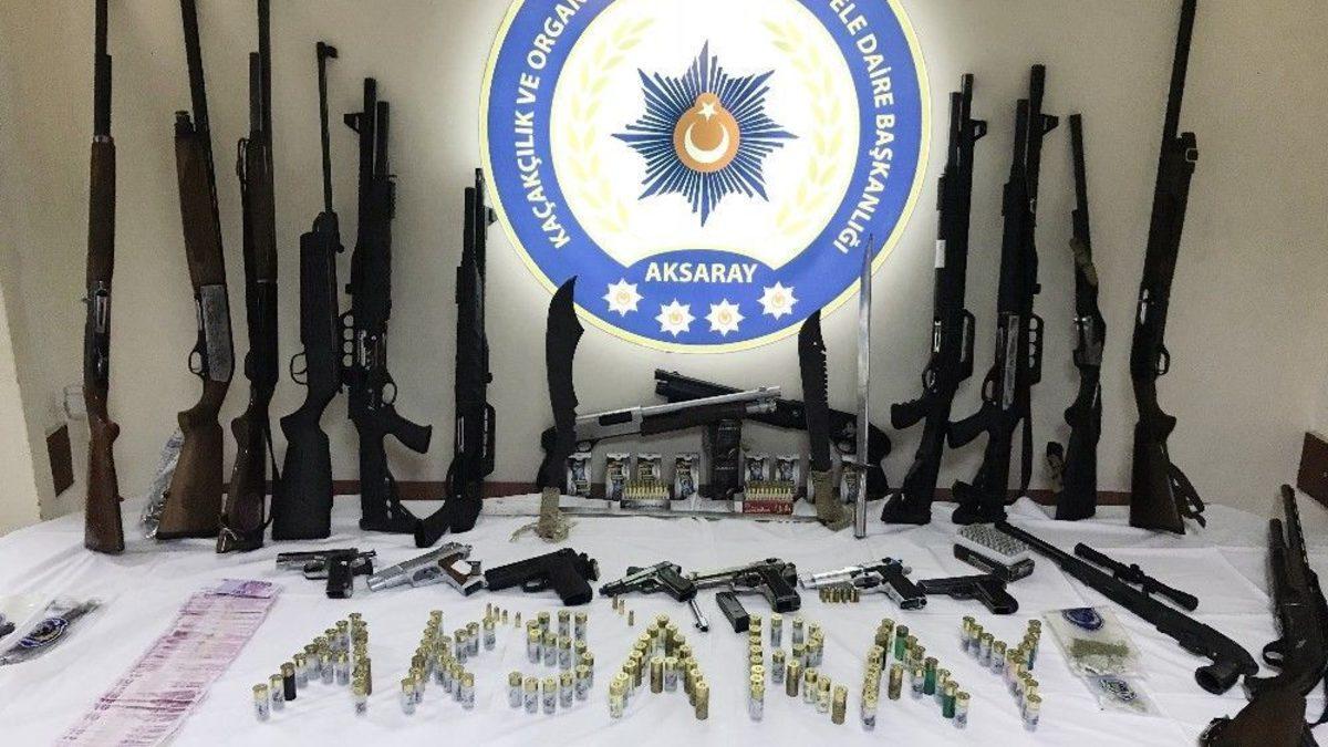 Aksaray’da, 22 ayrı yağma, silahla yaralama, uyuşturucu ticareti yapma, kişiyi hürriyetinden yoksun kılma, nitelikli dolandırıcılık, resmi belgede sahtecilik, gümrük kaçağı araç bulundurmak ve kullanmak, 6136 SKM, tehdit, ateşli silahla yaralama olaylarını gerçekleştirdikleri belirlenen suç örgütüne yönelik operasyon düzenleyen polis 23 şüpheliyi gözaltına aldı.Operasyon sabahın ilk ışıklarında Aksaray merkez, Ortaköy ilçesi ve köylerde gerçekleştirildi. Edinilen bilgiye göre, kentte suç örgütü kurarak haraç topladıkları, uyuşturucu ticareti yaptıkları ve silahla adam yaralamak gibi eylemler gerçekleştirdikleri iddia edilen şüphelilerin olduğu bilgisine ulaşan İl Emniyet Müdürlüğü Kaçakçılık ve Organize Suçlarla Mücadele (KOM), Terörle Mücadele (TEM), Narkotik Suçlarla Mücadele (NSM) Şubesi ekipleri, liderliğini Yaşar Koçak isimli şahsın yaptığını tespit ettikleri suç örgütünü takibe aldı. Çete lideri olduğu belirlenen Yaşar Koçak’ı takibe başlayan polis ekipleri, 6 ay boyunca teknik ve fiziksel takip yaptı. Yapılan takiplerde 30 şüpheliyi tespit eden ve birçok delil elde eden polis, sabahın ilk ışıklarında Aksaray Cumhuriyet Başsavcılığının koordinesinde operasyon için düğmeye bastı. Aksaray merkezde 6, merkeze bağlı Borucu köyünde 1, Hırkatol köyünde 1, İsmailağatolu köyünde 1, Altınkaya köyünde 1, Sevinçli köyünde 1, Ortaköy ilçesinde 13, Gökkaya köyünde 3 ve Bozkır köyünde 1 adres olmak üzere toplam 28 ayrı adrese 197 polis ile eş zamanlı baskınlar yapıldı.Yapılan aramalarda adeta cephanelik ele geçtiYapılan baskınlarda 23 şüpheli gözaltına alınırken, kayıp olan 7 kişinin aranmasına devam ediliyor. Şüpheliler ev aramalarının ardından Aksaray Eğitim ve Araştırma Hastanesine getirilerek sağlık kontrolünden geçirildikten sonra sorgulanmak üzere İl Emniyet Müdürlüğüne götürüldü. Evlerde yapılan aramalarda ise elde geçen ateşli silahlar ve mühimmatlar adeta cephaneliği andırdı. 28 ayrı adreste didik didik arama yapan polis ekipleri 16 adet av tüfeği, 545 adet av tüfeği fişeği, 8 adet ruhsatsız tabanca, 36 adet tabanca mermisi, suçtan elde edildiği değerlendirilen toplam 65 bin 440 TL para, 5 bin 740 TL sahte para, bin euro sahte para, 113,12 gram esrar, 3 adet çek-senet, 3 adet bıçak, 4 adet pala, 2 adet kurusıkı tabanca ele geçirildi.Operasyonla ilgili Emniyet Müdürlüğünden açıklama yapıldıOperasyonla ilgili Aksaray Emniyet Müdürlüğü de açıklama yaptı. Yazılı olarak yapılan açıklamada şunlar kaydedildi:"Kaçakçılık ve Organize Suçlarla Mücadele Şube Müdürlüğümüz görevlilerince ilimiz genelinde çıkar amaçlı suç örgütleri ile yapılan mücadele çalışmaları sonucunda, Yaşar Koçak’ın (çevresinde Kürt Yaşar olarak bilinen) çıkar amaçlı suç örgütü kurduğu, örgüte liderlik yaptığı, örgüte elaman ve silah temin ettiği, örgüt mensupları ile birlikte halk arasında korku, panik ve infial uyandıracak silahlı eylemler gerçekleştirdikleri, halka baskı yapıp, şiddet uygulayarak darp ettikleri, işyeri sahiplerinden silah zoru ile haraç aldıkları, vermek istemeyenlere karşı silahlı eylemler gerçekleştirdikleri ve bu yolla haksız kazanç sağladıkları tespit edilmiştir. Aksaray Cumhuriyet Başsavcılığının koordinesinde, KOM Şube Müdürlüğü ekiplerince altı ay süre ile teknik ve fiziki takip çalışmaları yapılmış, şüpheli Yaşar Koçak’ın liderliğini yaptığı suç örgütünün 22 ayrı yağma, silahla yaralama, uyuşturucu ticareti yapma, kişiyi hürriyetinden yoksun kılma, nitelikli dolandırıcılık, resmi belgede sahtecilik, gümrük kaçağı araç bulundurmak ve kullanmak, 6136 SKM, tehdit, ateşli silahla yaralama olaylarını gerçekleştirdikleri tespit edilmiştir. Yeteri kadar delil elde edilmesinden sonra Aksaray Cumhuriyet Başsavcılığının talimatı doğrultusunda, örgütün eylemlerinin deşifre edilerek, örgüt mensuplarının yakalanmasına yönelik olarak eş zamanlı olarak operasyon kararı alınmıştır."Operasyonla ilgili çok yönlü soruşturma sürüyor.