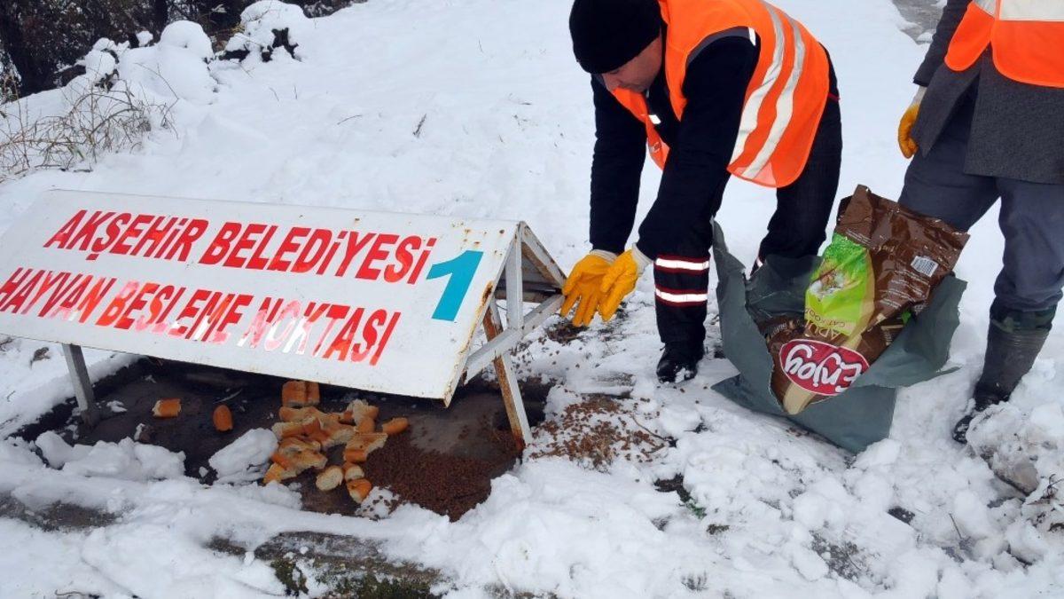 Akşehir Belediyesi Temizlik İşleri Müdürlüğü ekiplerince, yoğun kar yağışının ardından yem bulmakta zorlanan doğal hayattaki kuşlar ile sokaklardaki sahipsiz kedi ve köpeklerin beslenmesi için beslenme odaklarına ve uygun yerlere yem, mama ve ekmek bırakılıyor.