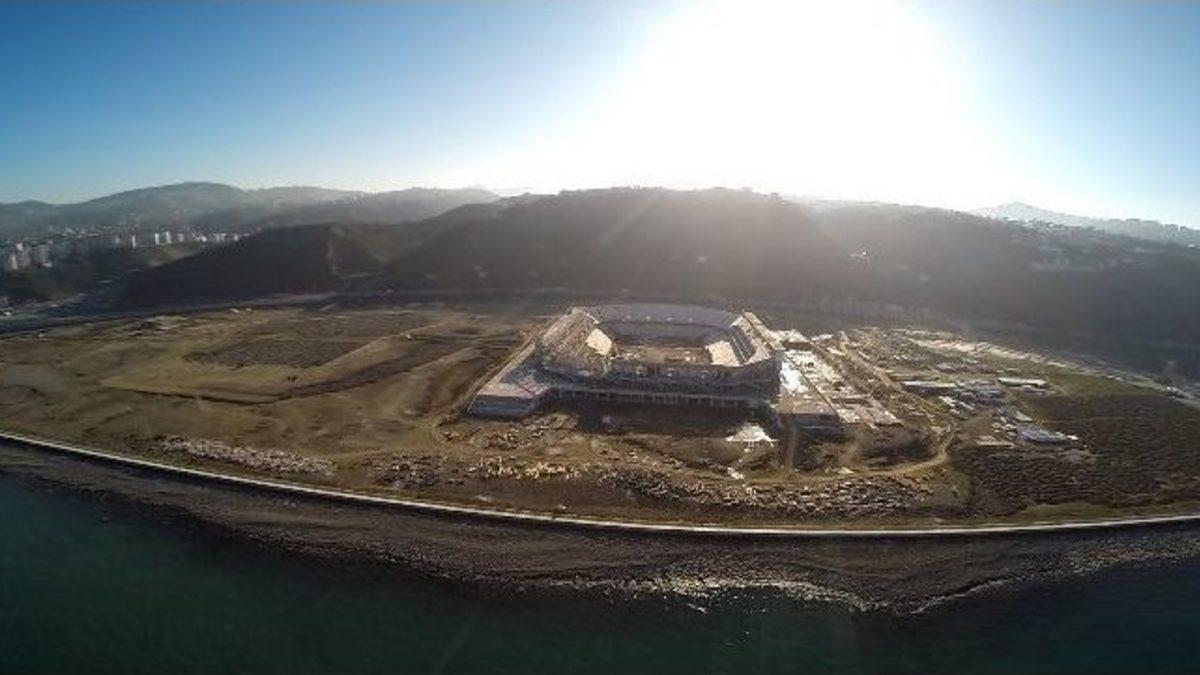 Trabzonsporlular’ın heyecanla beklediği Akyazı Stadı havadan görüntülendi.Trabzonspor’un maçlarını oynayacağı Trabzon Akyazı Spor ve Kültür Kompleksi’nde çalışmalar hızlı bir şekilde ilerliyor. Çalışmaların 24 saat aralıksız sürdüğü ve bu yıl içinde tamamlanması beklenen stadın kaba inşaatı bitme aşamasına geldi. Tribünlerde koltukların yerleştirileceği bölümlerin yarısı tamamlanırken, 418 bin 89 m2 arsa üzerine yapılacak olan Akyazı Spor ve Kültür Kompleksi’nde stadyumun inşaatı alanında 134 bin 913 m2 olacak. 41 bin 513 kişi kapasiteli stat, çatı sistemi ile Türkiye’de bir ilk olacak. Çatı çevre dostu, kendini temizleme ve hava kirliliğini giderme özelliğine sahip “akıllı çatı” olarak bilinen “Smart Roof” sisteminde inşa edilecek.Stadyum inşaatının havadan görüntüsü Trabzon Büyükşehir Belediyesi’nin İHA’sı tarafından görüntülendi.
