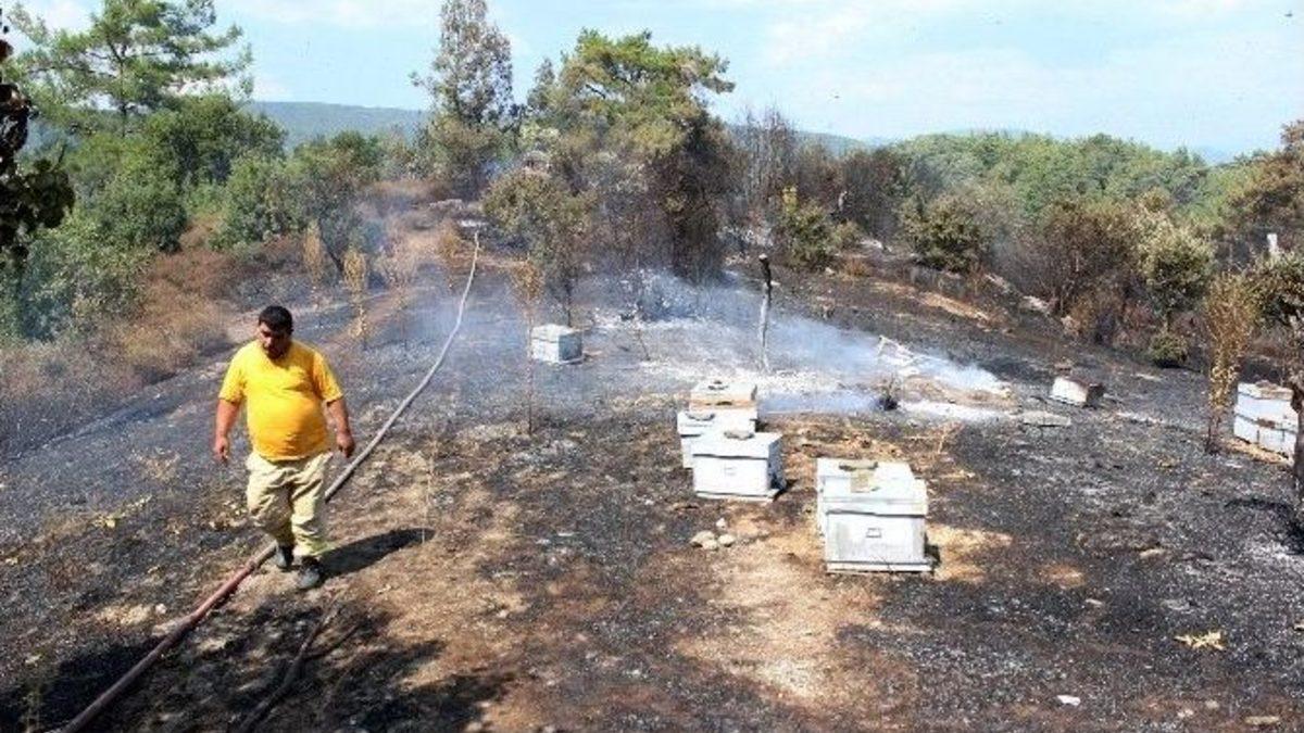 Muğla'nın Ula ilçesinde meydana gelen orman yangınında çok sayıda arı kovanı, zeytinlik ve ormanlık alan yandı.Yangın, öğleden sonra Ula'nın Çıtlık ve Elmalı Mahallesi arasında kalan Dereyanı Mevkiinde meydana geldi. Çıkış nedeni tespit edilemeyen yangında yüzlerce arı kovanının bulunduğu zeytinlik alan ve arı kovanı telef oldu. Kısa sürede kızılçam ormanına sıçrayan yangına, 3 helikopter, 10 arazöz, 3 itfaiye ve yaklaşık 100 orman işçisi müdahale etti. Yaklaşık 2 saatlik havadan ve karadan söndürme çalışması sonrası yangın ormanlık alanda kontrol altına alındı.Yangında 15 dönüm zeytinlik alan, 2 dönüm kızılçam ormanı ve çok sayıda arı kovanı ile arılar telef oldu.Olay yerine gelen jandarma ekipleri, yangının çıkış sebebiyle ilgili çalışma başlattı.