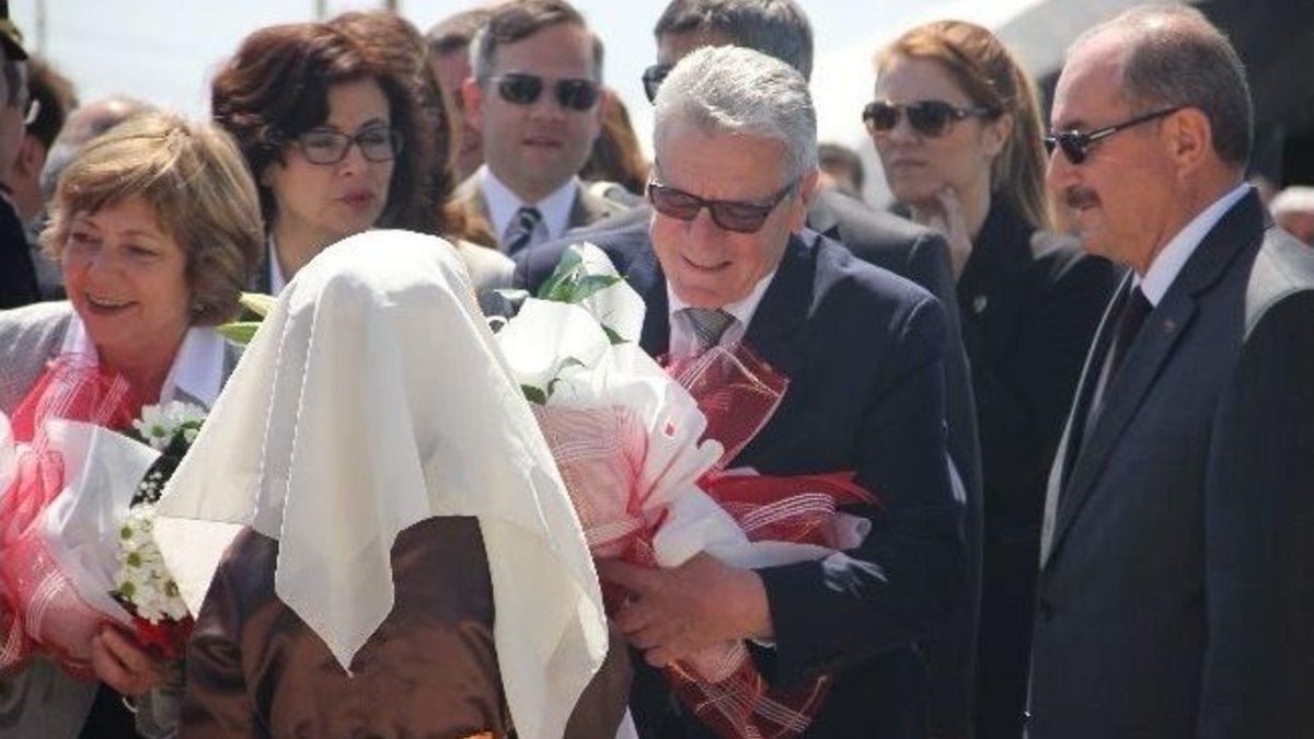 Almanya Cumhurbaşkanı Joachim Gauck, Kahramanmaraş'taki Suriyeli mültecilerin kaldığı çadır kenti ziyaret etti.Almanya Cumhurbaşkanı Joachim Gauck, eşi Daniela Schadt ve beraberindeki heyet ile birlikte Kahramanmaraş il merkezindeki Suriyeli mültecilerin kaldığı çadır kente yaptığı ziyarete, Vali Şükrü Kocatepe, Kahramanmaraş Büyükşehir Belediye Başkanı Fatih Mehmet Erkoç, Almanya'nın Türk asıllı Uyum Bakanı Aydan Özoğuz, Almanya'nın Türkiye Büyükelçisi Eberhard Pohl, Türkiye'nin Berlin Büyükelçisi Hüseyin Avni Karslıoğlu da eşlik etti.Çadır kentte Kahramanmaraşlı 2 çocuğun çiçeklerle karşıladığı Almanya Cumhurbaşkanı Joachim Gauck, AFAD yöneticilerinden çadır kent hakkında brifing aldı. Brifing esnasında Kahramanmaraş’ta Almanlar tarafından yaptırılmış olan eski bir hastanenin tarihi fotoğrafı da Cumhurbaşkanı Gauck’a gösterildi.Almanya Cumhurbaşkanı Joachim Gauck,brifing sonrasında çadır kentte yürüyerek Suriyeli mültecileri hizmet veren markete incelemelerde bulundu. Cumhurbaşkanı Gauck, daha sonra çadır kentte hizmet veren UNICEF merkezini ziyaret ederek, burada eğitim gören Suriyeli çocukların Türkçe şarkılarını dinledi, ardından Arapça kısa piyesi izledi. Gauck, program sonrasında çocuklarla birlikte fotoğraf çektirdi. Toplu fotoğrafta arkada kalan çocukları Gauck, kucaklayarak kareye aldırdı.Çadır kentte hizmet veren hastaneyi de ziyaret eden Almanya Cumhurbaşkanı Joachim Gauck, bir çadırı basına kapalı olarak ziyaret ederek buradaki Suriyeli aile ile görüştü.BASINA HALAT İPLE ENGELLEMEAlmanya Cumhurbaşkanı Joachim Gauck’ın çadır kentteki ziyareti esnasında Alman görevliler basın mensuplarını Gauck’a yaklaştırmamak ellerine bir halat ip alarak basın mensuplarına karşı önlem aldılar.