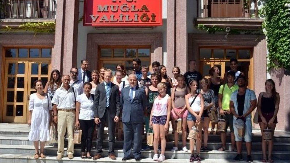 Kuzey Reine Westfalya Eyaleti, Wesseling Belediyesi Gençlik Dairesi ile Ula Belediyesi'nin ortaklaşa organizasyonuyla Akyaka mahallesinde 9 yıl önce başlayan proje kapsamında Muğla’ya gelen 18 öğrenci ve dört yönetici vali Mustafa Hakan Güvençer’i ziyaret etti.Ziyarette konuşan vali Güvençer, “Hem Türkiye’ye, hem Muğla’ya hoş geldiniz. Sizi burada ağırlamak bizim için büyük bir mutluluk. Dünya’da esas olan aslında iyilik ve güzellik. Bütün insanlar aslında birbirine benziyorlar. Bizim için en büyük tehlike zihnimizde yarattığımız kendimize özgü dünyalar ve önyargılarımız. Bundan sonra da hepimiz hayatta yadırgadığımız şeylerle karşılaşabiliriz. Bilmemiz gereken karşı tarafı iyi anlayabileceğimiz bilgilere sahip olmadan varacağımız hükümlerin bizi yanıltacağı olmalı” diye konuştu.Muğla’ya gelmekten çok mutlu olduğunu dile getiren Jugendring Wesseling e.v. Gençlik Dairesi Kurum Müdürü Daniel Vieböfer ise yaptığı konuşmada: “Öncelikle Muğla’ya davet edildiğimiz için çok teşekkür ediyorum. Ben Türkiye’ye ilk defa geliyorum. Son derece olumlu düşüncelerle buradan ayrılacağım. Sizin karşılamanızda gayet samimiydi. Her yerde kendimizi iyi hissettik. İnsanlarınız çok güler yüzlüydü. Bu projenin 9 yıldır devam etmesini büyük bir sevinçle karşılıyoruz. Ve ben Gençlik Dairesi adına bu projenin daha iyi koşullarda devam etmesi için elimden gelenin en iyisini yapmaya çalışacağım. Güzel bir hafta geçirme şansına sahip olduğumuz için çok çok teşekkür ederim. Gençlik Değişim Projesi ve bu dostça davetiniz için çok teşekkürler” dedi.Bu proje ile önyargıları yıkmayı amaçladıklarını söyleyen Wesseling Belediyesi temsilcisi ve proje sorumlusu Vahide Özer, “Bu proje Akyaka’da 9 yıldır sürüyor. Wesseling Belediyesi olarak doğrudan eyaletten bütçe alamıyoruz. Orada gençlik çalışması yapan başka bir kurumun aracı olması gerekiyor. Bu konuda da Jugendring Wesseling e.v. Kurum Müdürü Daniel Vieböfer bize destek oluyor. Projemizde ön yargıları yıkmak, eğer yanlış düşünceler varsa onları gidermek için o ülkeyi yerinde tanıtmayı amaçlıyoruz. Özellikle gençleri projemize dahil ediyoruz. Çünkü gençlerde değişim daha kolay. Gençleri buraya getirerek yerinde, yöresinde insanları tanıtmak çok yararlı oluyor. Her defasında hedefine ulaşan bir proje. Bu yıl 15-18 yaş arasında 18 öğrencimizin yer aldığı toplam 22 kişilik bir heyet Akyakaya’ya geldi. Önümüzdeki yıl da Wesseling’e Türk öğrenciler gelecek. Umarım projemiz uzun yıllar devam eder” dedi.Bir haftadır Akyaka’da kalan Alman öğrenciler yapılan workshoplarda birçok konuda Türkiye’yi ve Türkleri yakından tanıma fırsatı buldu. Türkiye’ye geldikleri için çok mutlu olduklarını söyleyen Alman öğrenciler, “Türkler çok misafirperver. Burada bulunmaktan çok mutlu olduk. Türkler sıcakkanlı ve cana yakın. Workshoplarda birbirimizi daha iyi tanıma fırsatı yakaladık. Bu çalışma çok faydalı oldu” dediler.Wesseling Belediye Başkanı Erwin Eser’in niyet mektubunun okunmasının ardından Vali Güvençer Daniel Vieböfer’e bakır şekerlik ve el dokuma şal hediye etti. Daniel Vieböfer ise Vali Güvençer’e yörelerine özgü çeşitli hediyeler verdi.