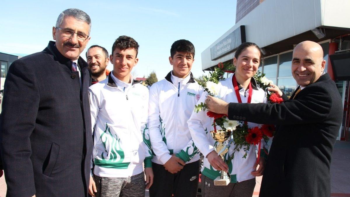 Uluslararası FIS Çocuk Kupası Alp Disiplininde ülkemize bir altın bir de bronz madalya kazandıran Ceren Reyhan Yıldırım, milli takımdan arkadaşları ile birlikte Erzurum Havalimanında çiçeklerle karşılandı.