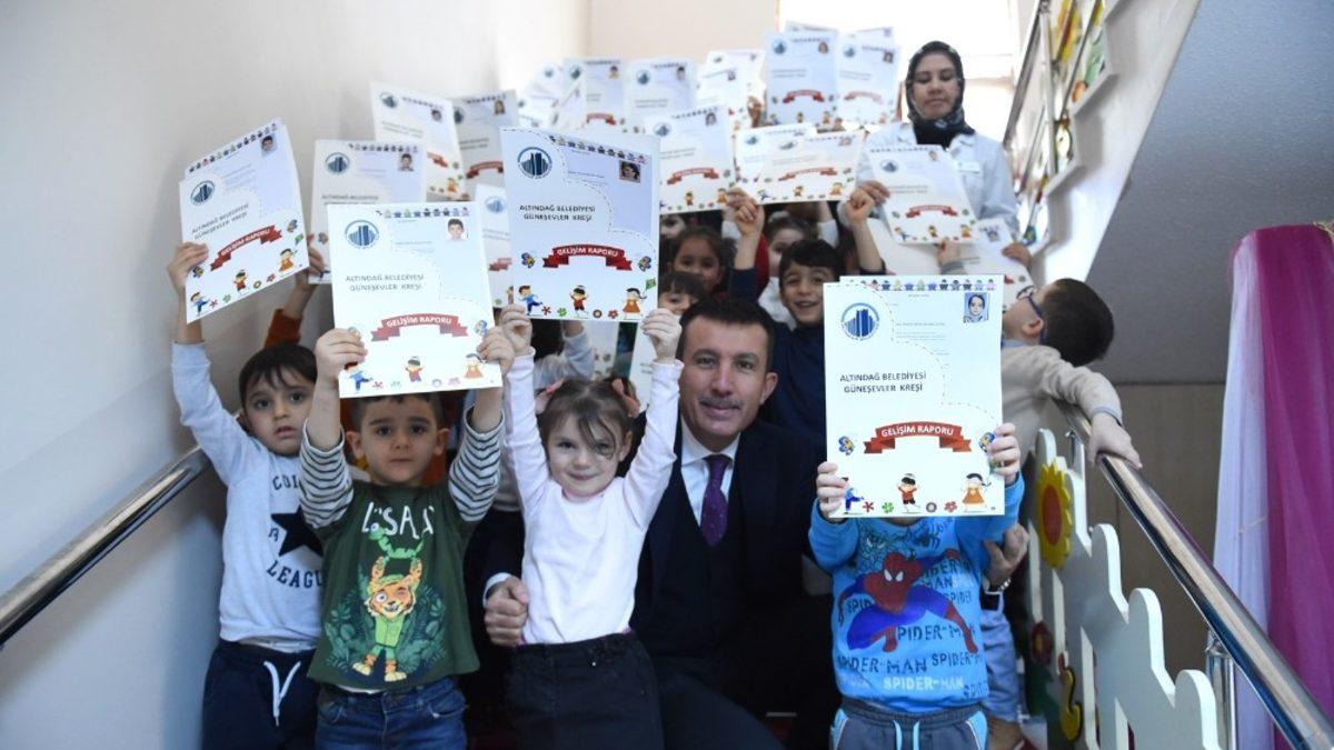 Altındağ Belediyesine bağlı olarak hizmet veren kreşlerde eğitim-öğretim yılının birinci dönemi sona erdi. Kreşe gidiyor olmanın sevincini yaşayan minik öğrenciler, ara karnelerine kavuştu.