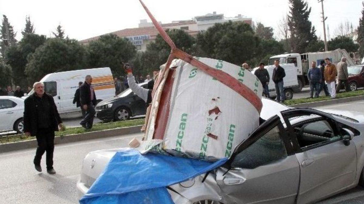 Akhisar merkezi içerisinden geçen İzmir-İstanbul devlet karayolundaki trafik kazası görenleri şaşkına çevirdi.İstanbul istikametinden İzmir istikametine giden Ali Y. yönetimindeki 06 HC 0955 plakalı TIR, ışıklı işaret cihazlarının bulunduğu Gölmarmara kavşağında ani firen yapması sonucu üzerindeki 6 ton ağırlığındaki alüminyum rulo, aynı yöne hareket eden 35 VSR 29 plakalı otomobilin üzerine düştü. Kazada, hurdaya dönen otomobil içerisindeki Mehmet Emin K. (52) ve Halise K. (17) hafif yaralandı. Kısa süre trafiğe kapalı kalan karayolu araçların çekilmesiyle tekrar ulaşıma açıldı.