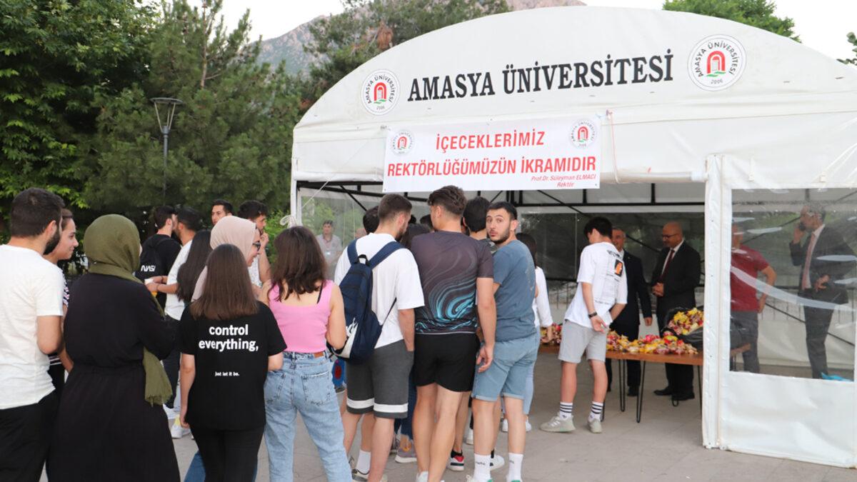 Amasya Üniversitesinde final sınavları döneminde kütüphanede ders çalışan öğrencilere ikramda bulunuluyor.