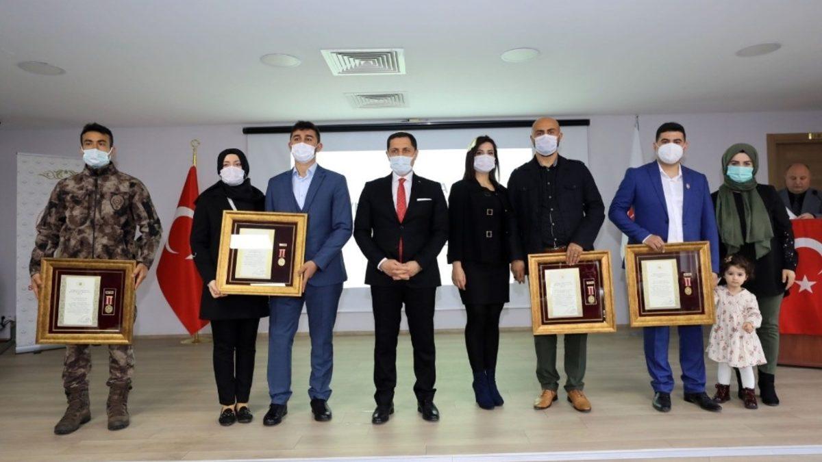 Saygı duruşu ve İstiklal Marşı’nın okunmasıyla başlayan törende Cumhurbaşkanı Recep Tayyip Erdoğan’ın mesajı okundu. Gaziler Fazlı Hakan Baykara, Serkan Köse, Serkan Güney, Cihat Kılıç, madalya ve beratlarını veren Vali Mustafa Masatlı, “Gazilerimiz ve aziz şehitlerimizin yakınları milletimize tevdi edilmiş en kıymetli emanetlerdir” dedi.