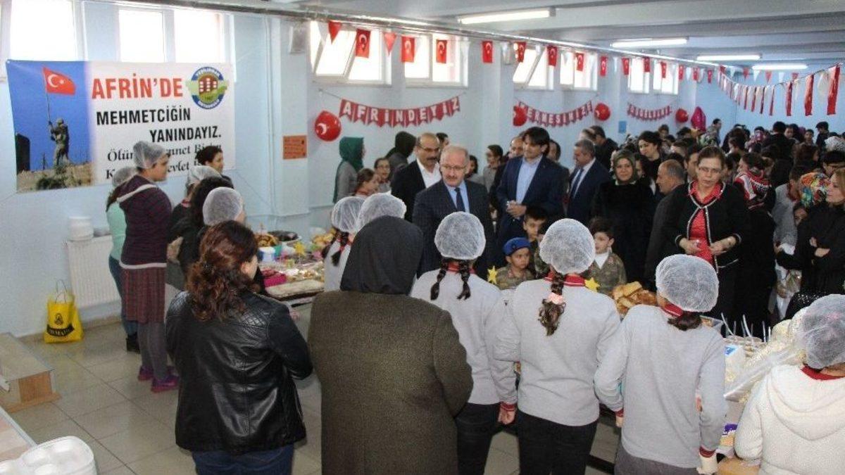 Amasya Yeşilırmak Ortaokulunda öğrenciler, öğretmenler ve velilerinin katkılarıyla Afrin’e yönelik Zeytin Dalı Harekatı’na katılan Mehmetçiklere destek amacıyla kermes düzenlendi.Hazırlanan ev yemekleri ile hamur işi gıdaların yanı sıra çeşitli ürünler satışa sunuldu. Öğrencilerden Mert Durmuş ile Aleyna Kurt, kermeste görev almalarından dolayı mutlu olduklarını söylediler.Okul aile birliği başkanı Gönül Soysal da kermesin gelirinin tamamının Türk milletinin sevgilisi olan Afrin’deki Mehmetçiklere gönderileceğini belirtti.İl Milli Eğitim Müdürü Dr. Hüseyin Güneş de öğrencilere ikram ettiği yiyeceklerin parasını ödeyerek kermese destek oldu.