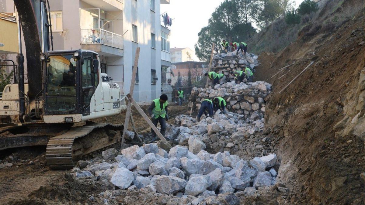 Turgutlu Belediye Başkanı Çetin Akın, Başkan Yardımcıları Ahmet Daşkan, Fırat Honaz ve Evren Erbaş Ser ile birlikte geçtiğimiz ay çöken Anadolu Lisesi istinat duvarı için Fen İşleri Müdürlüğü ekipleri tarafından başlatılan çalışmaları yerinde inceledi. Turgutlu Anadolu Lisesinin duvarı aralık ayında yağan yoğun yağmur yağışı sonrası toprak kayması nedeniyle çökmüştü. Turgutlu Belediyesi Fen İşleri Müdürlüğü ekipleri yüksekliği 4 metre ile 5.5 metre arasında değişen 62 metre uzunluğunda kademeli taş istinat duvarı için çalışmalarına başladı.