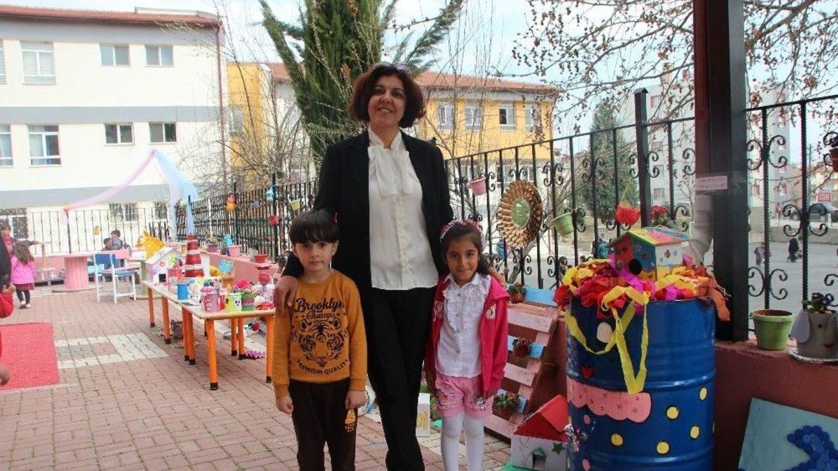 Bilecik Bahçelievler Anaokulu’nda gerçekleştirilen Eko Okul Projesi kapsamında hazırlanan ’Yağmur Sularının Geri Dönüşümü’ projesi davetliler tarafından büyük beğeni topladı.Bilecik Bahçelievler Anaokulu’nda bahçesinde Eko Okul Projesi kapsamında anaokulu öğrencileri tarafından hazırlanan sergi, defile ve yapılan projeler açılışına Bilecik İl Milli Eğitim Müdürü Fazilet Durmuş, Eğitim Bir-Sen Bilecik Şube Başkanı Ahmet Selöz, öğretmenler, öğrenciler ve veliler katıldı.“Öğrencilerimizden de olumlu dönükler alınca çok mutlu olduk”’Yağmur Sularının Geri Dönüşümü’ projesi hakkında bilgi veren Bahçelievler Anaokulu Müdürü Sevgi Uğurlu "Kullanıyorum, atmıyorum, hayatıma uyarlıyorum" projesi kapsamında bir çok etkinlik düzenlediklerini belirtti. Uğurlu, “Burada öncelikli olarak hedefimiz su dönüşümünün çocuklara uygulayarak öğretmek. Yağmur sularının oluklardan birikerek gelip su kazanına dolmasıyla buradan akıttığımız hortumlarla ve kovalarla suyu çiçeklerimizin ve bahçemizin sulanmasında kullanıyoruz. Öğrencilerimize hem suyu fazla tüketmemek hem de geri dönüşü yağmur sularını nasıl kullanabileceğimizi anlatmak. Bunda da hedefimize ulaşmak bizi çok mutlu etti. Öğrencilerimizden de olumlu dönükler alınca çok mutlu olduk” dedi.Yapılan konuşmanın ardından protokol üyeleri “Çocuğun olduğu her yer güzeldir” diyerek serginin açılış kurdelesini kesti. Kurdele kesiminin ardından anaokulu öğrencilerinin projede olan yağmur sularının oluklara irikmesi ve su kazanına gelmesiyle akıtılan suyun çiçek ve bahçeyi sulama gösterileri, Eko-Tim adlı geri dönüşüm defilesi ve son olarak ikram yapılmasıyla etkinlik son buldu.