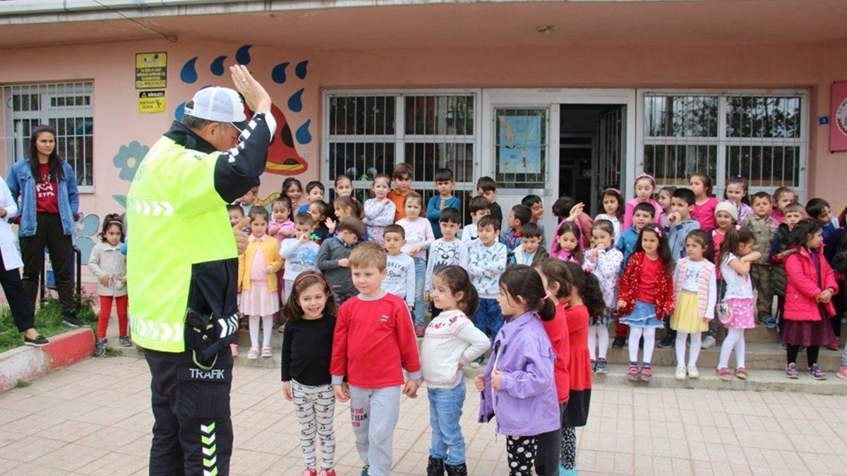 Oltu Bölge Trafik istasyon ekipleri Oltu Anaokulu öğrencilerine Trafik kurallarını anlattılar.