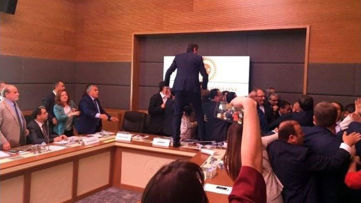 Dokunulmazlık görüşmelerin devam ettiği Anayasa Komisyonu’nda kavga çıktı.Anayasa Komisyonu’nun başında AK Partili ile HDP milletvekilleri arasında kavga çıktı. Kadın milletvekilleri de kavganın arasında kaldı. Anayasa Komisyonu Başkanı Mustafa Şentop, milletvekillerini sakinleştirmeye çalıştı.Adalet Bakanı Bekir Bozdağ ile HDP Grup Başkanvekili İdris Baluken ve Muş Milletvekili Ahmet Yıldırım arasında da tartışma yaşandı. Komisyon toplantısına saat 18.00’e kadar ara verildi.