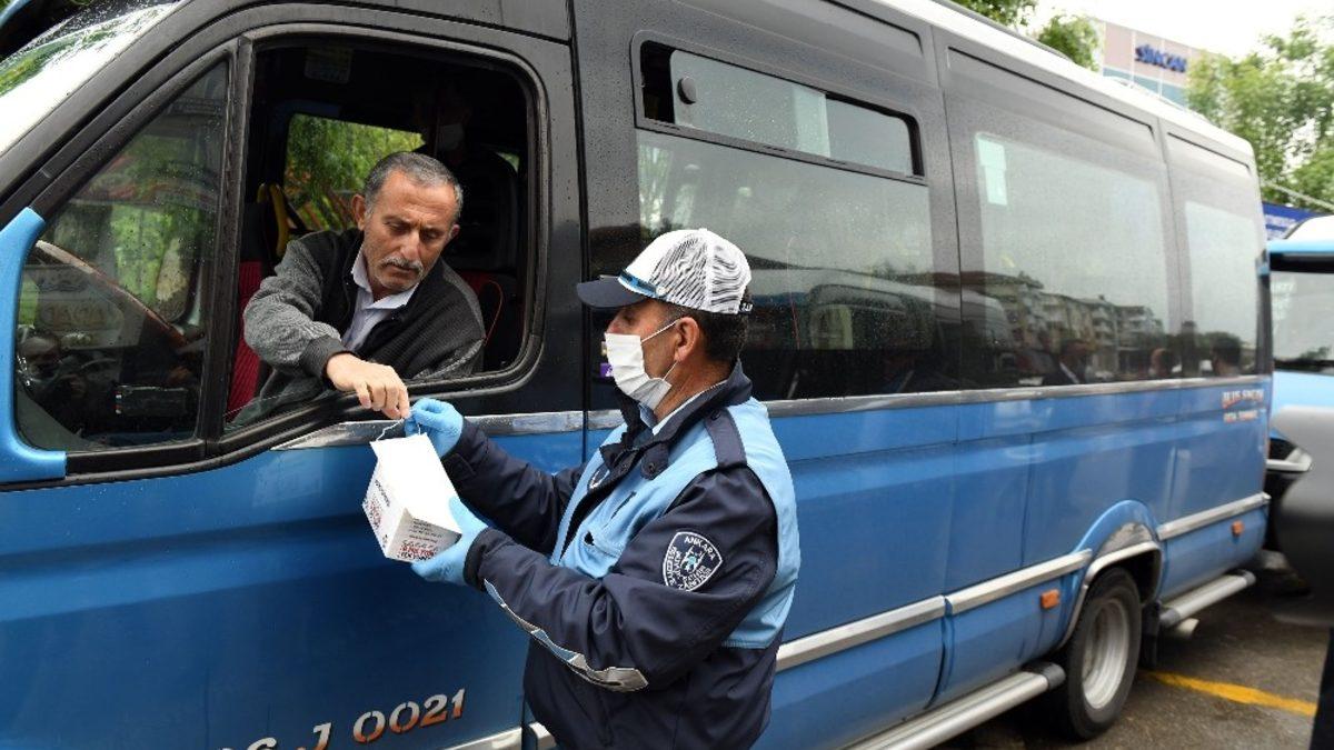 Ankara zabıtası, virüs nedeniyle işleri azalan dolmuşçu esnafına dezenfektan ve maske dağıtımının ardından gıda yardımında bulunacak.