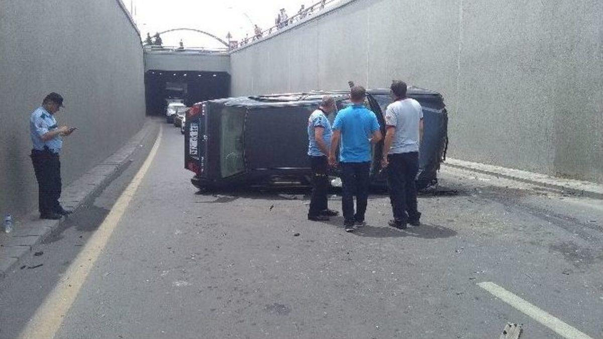 Başkent’te kontrolden çıkan otomobil, yol kenarındaki korkulukları kırarak alt geçide uçtu. Kazada otomobilde bulunan 2’si çocuk 3 kişi yaralandı.Kaza, saat 13.30 sıralarında Samsun yolu 1011 Kavşağı’nda meydana geldi. Edinilen bilgiye göre, Samsun yolundan Siteler istikametine giden dede ve 2 torununun bulunduğu 06 KG 764 plakalı otomobil, sürücünün direksiyon hakimiyetini kaybetmesi sonucu kontrolden çıktı. Kontrolden çıkan otomobil, yol kenarındaki korkulukları kırarak alt geçide uçtu. Yaklaşık 5 metre yükseklikten aşağı düşen otomobildeki dede ve torunları yaralandı. Kazayı gören diğer sürücüler, polis, itfaiye ve sağlık ekiplerine haber verdi. Yaralılar, olay yerine gelen sağlık ekiplerinin ilk müdahalesinin ardından ambulansla hastaneye götürüldü. Yaralıların durumlarının iyi olduğu öğrenildi. Kazayı merak ederek yol kenarında duran sürücüler ise trafikte aksamalara neden oldu. Alt geçit, kaza yapan araç olay yerinden kaldırılana kadar trafiğe kapatıldı.