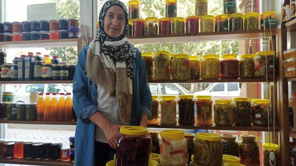 Ankara’daki bahçelerinden topladığı doğal salatalık ve domates gibi ürünlerle turşu kuran kadın girişimci, tadına doyum olmaz turşuları Eskişehir’deki dükkanında satmaya başladı.