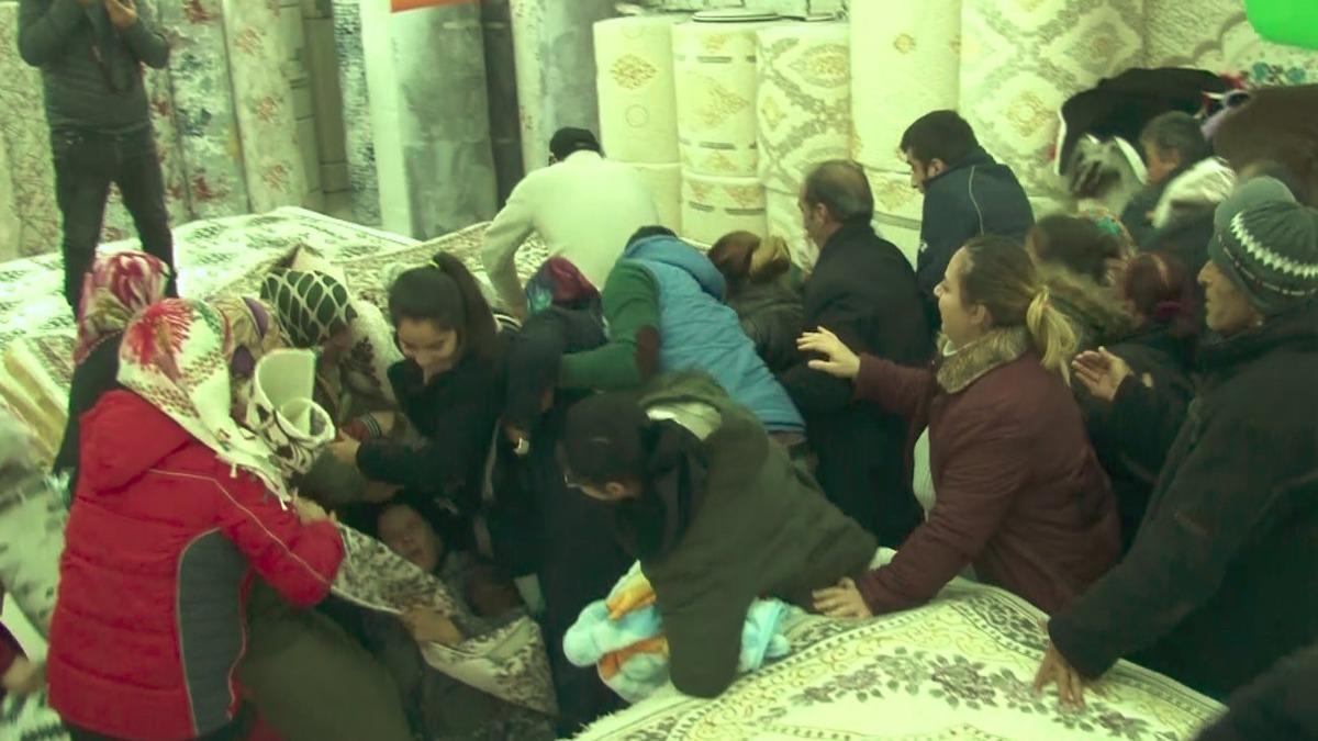 Antalya’da bir mağazanın açılışında "İlk 50 kişiye bedava halı ve paspas" kampanyasına katılmak isteyenler adeta birbirlerini ezdi. Ayrılan bedava halı ve paspasların yanı sıra indirimli ürünleri almak isteyenler arasında kavga çıktı. İzdiham karşısında görevliler” Kadın ölüyor, yeter, sakin olun” diyerek kalabalığı sakinleştirmeye çalıştı. İzdihamda telefonu ve ayakkabısını kaybedenler bile oldu.