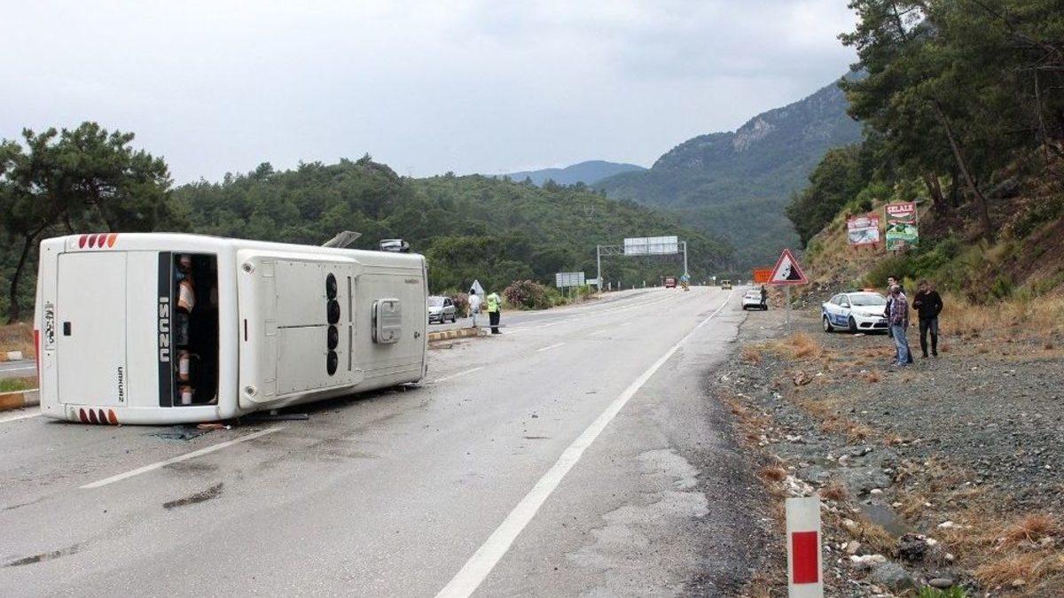 Antalya’ta tur otobüsünün devrilmesi sonucu 16 turist yaralandı. Çoğunluğunun Alman ve Avusturyalı olduğu öğrenilen turistler Kemer ve Antalya’daki hastanelerde tedavi altına alındı.Kemer ilçesindeki otellerde tatil yapmakta olan Alman ve Avusturyalı 16 turist, bir tur şirketinin organize ettiği geziye katıldı. 39 yaşındaki sürücü Özay Gökçe idaresindeki 07 LBF 16 plakalı otobüsle çıktıkları gezide 2365 metre yükseklikteki Tahtalı Dağı zirvesine teleferikle çıkan, daha sonra Ulupınar’da yemek yedikten sonra Phaselis Antik Kenti kalıntılarına gitmek üzere yola çıkan grubu taşıyan otobüs, D-400 Karayolu’nun Tekirova Kavşağına 200 metre kala kayarak orta refüje çarptı. Çarpmanın etkisiyle devrilerek karşı şeride geçen otobüste bulunan turistler, Beldibi, Tekirova,ve Kemer’dekn gelen 112 Acil servis ve h ait ambulanslarla ilçedeki hastanelere kaldırıldı. Çoğunun hafif yaralandığı belirtilen kazazedelerden durumları ağrı veya şüpheli görülen 6 kişinin Antalya’daki hastanelere sevkedildiği söğrenilirken, hafif yaralılar ayakta tedavi edildi.Tur otobüsü sürücüsü Özay Gökçe, kazanın oluş sebebi hakkında kesin bir fikri olmadığını söylerken yaralılardan bazıları yağış sebebiyle kayganlaşan yolda aracın kaydığını, bazıları da tekerleğin patladığını tahmin ettiklerini belirtti.Kazayla ilgili soruşturma başlatılırken hastanede ayakta tedavi gören otobüs sürücüsü ifadesi alınmak üzere Jandarma Karakoluna götürüldü.