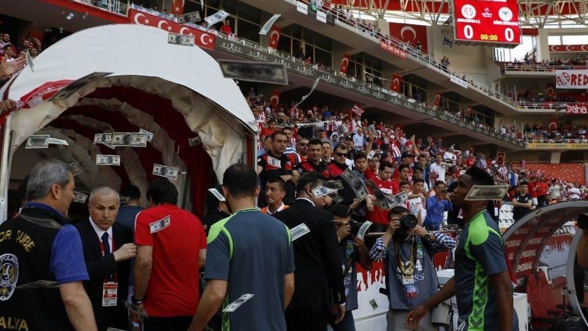 Antalyaspor taraftarları devre arasında Atiker Konyaspor’a transfer olan Samuel Eto’o’yu sahte dolarlarla protesto etti. Samuel Eto’o sahaya atılan sahte paraları topladı.Antalyaspor taraftarları devre arasında takımdan ayrılarak Atiker Konyaspor’a transfer olan Samuel Eto’o’yu protesto etti. Taraftarlar para için Atiker Konyaspor’a transfer olduğunu iddia ettikleri dünyaca ünlü golcü oyuncuya sahte para attılar. Isınmaya çıkan ve takımla birlikte ısınan Eto’o taraftarların attığı paraları toplarken, soyunma odasına gittiği esnada taraftarların yine protestosuna maruz kaldı. Eto’o, soyunma odasına gittiğinde taraftarlar yıldız oyuncuya tekrar sahte para attı.Samuel Eto’o, Antalyaspor formasıyla 2,5 sezonda 44 gol atarken, 14 de asist yapma başarısı elde etmişti. 37 yaşındaki oyuncu, Antalyaspor tarihinin en golcü yabancı futbolcusu konumunda yer alıyor.