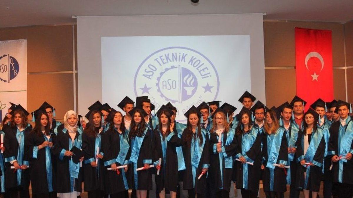 2016-2017 Eğitim-Öğretim yılını tamamlayan ASO Teknik Koleji öğrencileri mezuniyet heyecanı ve mutluluğunu birlikte yaşadı.ASO Teknik Koleji konferans salonunda Sincan İlçe Milli Eğitim Müdürü Adem Solmaz, Bölge Müdürü Ahmet Balcı, ASO Eğitim Kurulu Üyeleri, sanayiciler, öğrenci velileri ve öğrencilerin katılımıyla gerçekleştirilen mezuniyet töreninde 51 genç diplomasını aldı. Diploma heyecanını aileleriyle ve ASO Teknik Koleji’nin öğretim kadrosuyla paylaşan gençler “ASO Teknik Koleji’nde 4 yıllık eğim sürecinde yüksek kabiliyet, çağdaş eğitim ve sosyal imkanlar çerçevesinde bir süreci geride bıraktık. Buradan aldığımız eğitimle ülkemize, milletimize hayırlı bir nesil olmak istiyoruz” dediler.Sincan İlçe Milli Eğitim Müdürü Adem Solmaz mezuniyet töreninde yaptığı konuşmada, okulun ikinci mezuniyet törenini onur, gurur ve heyecanla yaşadıklarını belirterek, “Gençlerimizin buradan aldıkları eğitim, deneyim ve erdemli insan olma kabiliyetlerini yaşamlarının bundan sonraki sürecine yansıtacaklarına gönülden inanıyorum. Hepinizi tek tek tebrik ediyorum. Ayrıca ASO Teknik Koleji’nin tüm eğitim kadrosunu tebrik ediyor, Ankara Sanayi Odası’nın değerli Başkanı Nurettin Özdebir’e de Ankara’mıza böyle bir eğitim öğretim yuvası kazandırdıkları için teşekkür ediyorum” ifadelerini kullandı.Diploma töreninde, okul birincisi Bekir Haktanır, ikincisi Emirhan Aktürk ve üçüncüsü Mehmet Can Yılmaz’a ASO Eğitim Kurulu üyeleri tarafından diplomalarıyla birlikte çeşitli hediyeler de verildi. Tören, temsili diplomaların dağıtılması ve keplerin fırlatılmasıyla sona erdi.Diploma töreninde ayrıca, Ortaokul son sınıf öğrencilere matematiği sevdirmek ve matematiğin önemini kavratmak amacıyla Sincan İlçe Milli Eğitim Müdürlüğü ve ASO Teknik Koleji iş birliğinde Ankara genelinde düzenlenen 8. sınıflar arası Matematik yarışmasının ödül töreni de gerçekleştirildi. Yarışmada, Dr. Nurettin Beyhan Elbir Ortaokulundan Eren Demirci birinci, Ahi Evran Ortaokulundan Şimal Serenlioğlu ikinci, Mareşal Fevzi Çakmak Ortaokulundan Niyazi Ömer Yıldız, Cenk Yakın Ortaokulundan Habib Serhat Keskin ve Prof. Dr. Mehmet Sağlam Ortaokulundan Utku Aydın üçüncülüğü paylaştı. Yarışmada dereceye giren öğrencilere ASO Eğitim Vakfı Üyeleri tarafından çeşitli hediyeler verildi.