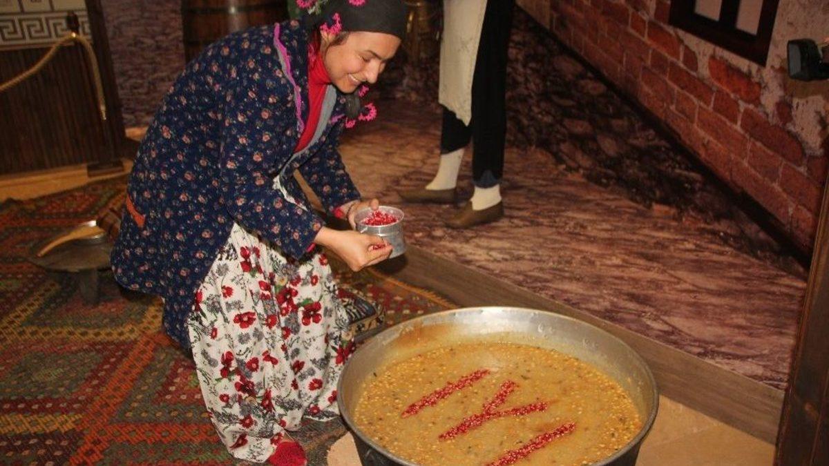 Osmanlıdan günümüze kadar gelen ve Türk mutfağının en önemli lezzetlerinden birisi olan Aşure tatlısı, Bilecik Belediyesi Yaşayan Şehir Müzesi’nde geleneklerine aslına uygun bir şekilde yaşatılırken, aşurenin üzerine Kayı Boyu’nun simgesi narla süslendi.Bilecik Belediyesi tarafından kentte kazandıran Yaşayan Şehir Müzesi çalışmaları bu sefer farklı bir çalışmaya imza atarak, gelen misafirlerine müzenin bahçesinde aşure yaptılar. Sabahın erken saatlerinde odun ateşinin üzerine konan kazanda pişen aşure için yaklaşık 3 saatlik bir uğraşıldı. Aşurenin üzerinde Bilecik’in Söğüt ilçesinde yurt tutan Kayı Boyu’nun simgesi narla süslendi."Bulgurun dibekte kaynaması aşurelik hale gelişini anlatıyoruz müzemizin içinde de anlatıyoruz"Yaptıkları etkinlik bilgi veren ve aşureyi odun ateşinde kaynatan Yaşayan Şehir Müzesi Müdüresi Yurdanur Kırlı, "Müzemiz içeride geleneklerimizi yaşattığımız gibi, müzenin bahçesinde de dönemi geldiğinde, zamanı geldiğinde bu tür etkinlikler yapacağız. Çünkü biz müzemizin içinde bu konuları işledik. 2’nci katımızda bulgur çeken teyzemiz, giriş katımızda ekmeğin öyküsünde bulgurun öyküsü ve bulgurun dibekte kaynaması aşurelik hale gelişini anlatıyoruz müzemizin içinde. Bahçesinde de bu etkinliğimizi gerçekleştirmek istedik. Bugün müzemize gelen ziyaretçilerimize de aşure ikram edeceğiz" dedi."Üzerine cevizle birliktede ziyarete gelenlerimize ikram edeceğiz"Yaşayan Şehir Müzesi Müdüresi Yurdanur Kırlı, Muharrem ayının 10’uncu günü olması nedeniyle müzenin bahçesinde aşure kaynattıklarını belirterek, "İçinde 4 kilo aşurelik buğday, 1’er buçuk kilo fasulye, nohut. 1’er kilo ceviz, üzüm, fındık ve baharatlarımızı ekleyeceğiz. Meyvelerimizi ekleyeceğiz. Kuru kayısı, kuru incir, kuru üzüm ve karanfil, tarçın üzerine ceviz dökerek de ikramlarda bulunacağız. Gelen ziyaretçilerimize bugün müzemize gelen ziyaretçilerimize. Şu an akşamdan ıslattığımız buğdayı sabah kaynattık. İçine nohutla fasulyeyi ekledik. Yarım saat sonra da meyvelerimizi ekleyeceğiz. Üzerine cevizle birliktede ziyarete gelenlerimize ikram edeceğiz. Buğdayı haşlayıp nohut ve fasulyeyi daha önce katmıştık. Şimdi de kuru meyvelerimizi, şekerimizi, karanfilimizi, nohut, fıstık ve üzerine ceviz ekerek ikram edeceğiz. Aşuremiz pişmek üzere" diye konuştu."Bugünün milletimizin birliğine, beraberliğine, kardeşliğine vesile olmasını cenabı haktan niyaz ediyoruz"Yaşayan Şehir Müzesine Bursa ve Konya’dan gelen misafirlere Bilecik Valisi Tahir Büyükakın, AK Parti Bilecik Milletvekili Halil Eldemir ve Bilecik Belediye Başkanı Selim Yağcı aşure kazanını karıştırarak, kendi elleriyle konuklara aşure ikram ettiler. Burada bir konuşma yapan Bilecik Belediye Başkanı Selim Yağcı, bugünün çok özel ve güzel bir gün olduğunu söyleyerek, "Hicri yılbaşındayız ve Muharrem Ayı’nın 10’uncu günündeyiz. Aşure günü olarak bilinen gündeyiz. İnşallah bugünün öncelikle hayırlara vesile olmasını milletimizin birliğine, beraberliğine, kardeşliğine vesile olmasını cenabı haktan niyaz ediyoruz. Bilecik Belediye Başkanlığı olarak Yaşayan Şehir Müzemizin konseptine uygun olarak böyle özel ve güzel günlerde gelen misafirlerimize o günün anlamına özgü ikramlarda bulunuyoruz. Bugün de aşure günü olduğu için gelen misafirlerimize, gruplarımıza böyle sağ olsunlar sayın valimizin, sayın milletvekilimizin ve çok değerli dostlarımızın da refakatlerinde aşure ikram etmenin aşımızı birlikte paylaşmanın mutluluğunu yaşıyoruz. İnşallah bunlar birliğimize beraberliğimize kardeşliğimize vesile teşkil eder diyorum" şeklinde konuştu.Konuşmaların ardından yaklaşık 500 kişilik yapılan aşure konuklara ikram edilirken, ziyaretçiler Bilecik Valisi Tahir Büyükakın ve Bilecik Belediye Başkanı Selim Yağcı ile bol bol hatıra fotoğrafı çektirdiler.Öte yandan, Yaşayan Şehir Müzesi şehrin Osmanlı dönemini anlatan ayrıca yakın tarihin sosyal, kültürel gelenek ve göreneklerini kapsayan son yüz yıllık tarihini, bugüne ve gelecek nesillere aktarmayı hedefleyen bir eser olarak biliniyor.