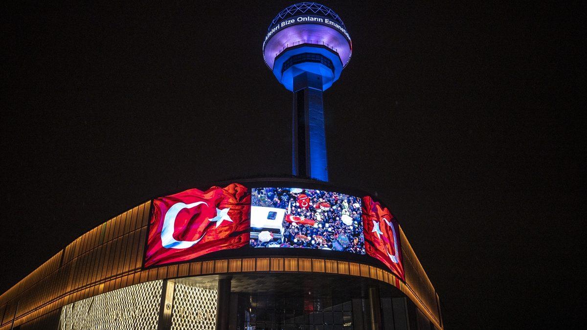 Ankara'nın simgesi Atakule, şehit ailelerine verilen destek mesajıyla ışıklandırıldı.
