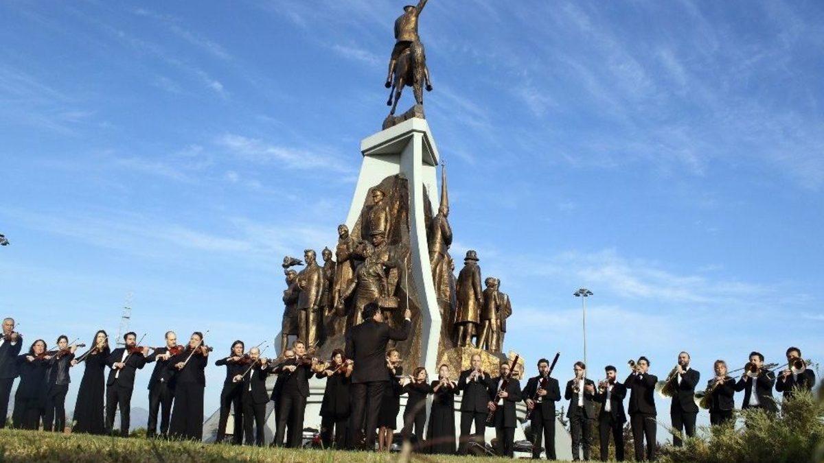 Antalya Devlet Senfoni Orkestrası, Mustafa Kemal Atatürk’ü ölümünün 79’uncu yılında Antalyaspor üst geçidi üzerinde bulunan Atatürk Anıtı’nın önünde İstiklal Marşıyla andı.Antalya Devlet Senfoni Orkestrası 65 kişilik kadrosuyla, Antalyaspor üst geçidi üzerinde bulunan Atatürk Anıtı’nın önünde, Türkiye Cumhuriyeti kurucusu Ulu Önder Mustafa Kemal Atatürk’ün ölümünün 79’uncu yılında anma töreni gerçekleştirdi. İbrahim Sezer şefliğinde Atatürk Anıtı önüne gelen sanatçılar saat 09.05’i gösterdiğinde saygı duruşunun ardından İstiklal Marşı’nı çaldı. Siren sesinin duyulmasıyla beraber araçlar dururken, vatandaşlar araçlarından inerek saygı duruşunda bulundu ve İstiklal Marşı’nı okudu. Antalya Devlet Senfoni Orkestrası daha sonra Valilik törenine katılmak üzere Atatürk Kültür Merkezi’nde gitti.65 kişilik orkestra ile Atatürk Anıtı’na geldiklerini ifade eden Orkestra Şefi İbrahim Sezer, "Antalya Devlet Senfoni sanatçıları olarak Atamızı bu şekilde anmak istedik. Birazdan da Valilik törenine AKM’ye geçeceğiz. Bu kendi içimizden gelen, kendi duygularımızla yaptığımız anma töreni. Tüm arkadaşlarıma teşekkür ediyorum. Atamıza çok teşekkür etmek istiyorum. 65 kişilik bir kadroyla buraya geldik. Yürekten buradayız. Herhangi bir görevlendirme yok. Kendi aklımızla kendimiz gibi anmak istedik" dedi.