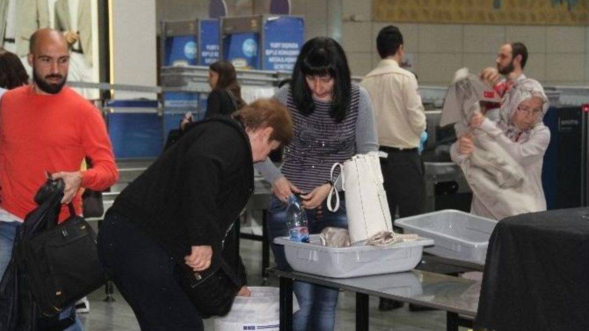 Atatürk Havalimanı’nda güvenlik önlemleri artırılıyor. Artık yolcular kemer ve saatlerini de çıkaracak.Brüksel Havalimanı’na yapılan saldırı ve terör olaylarının ardından güvenlik önlemlerinin sıklaştırıldığı İstanbul Atatürk Havalimanı’nda yeni bir uygulama daha devreye girdi. İstanbul Atatürk Havalimanı’nda artık dış hat yolcuları pasaporttan geçtikten sonra, iç hat yolcuları da arındırılmış salona geçerken yapılan aramalarda saat ve kemerleri çıkaracak. Bu yöndeki uygulamaya Atatürk Havalimanı’nda başlandı. Atatürk Havalimanı pasaport kontrol noktasından sonra güvenlik noktalarında tüm yolcular sinyal vermese dahi kemer ve saatlerini x - ray cihazına koyacak.Perşembe gününden itibaren dış hat yolcuları pasaport kontrol noktası sonrası, iç hat yolcuları da uçağa binmeden önceki son aramaların yapıldığı güvenlik noktasından geçişlerinde saatlerini ve kemerlerini de çıkarmaya başladı. Yeni güvenlik önlemlerinden Atatürk Havalimanı personeli de nasibini aldı. Atatürk Havalimanı’nda görevli tüm personel de "Arındırılmış Alan" denilen gümrüksüz bölgeye geçerken kemerlerini ve saatlerini çıkaracak.Yolcular yanlarında bulundurdukları eşyalarıyla birlikte kutulara koydukları kemerleri ve saatleri X-Ray cihazlarından geçiriyorlar.Kendileri de dedektörlü kapıdan geçtikten sonra eşyalarını kutudan alarak saatlerini ve kemerlerini takıyorlar.EL DEDEKTÖRÜ YERİNE ELLE ARAMATerör olaylarının artmasının ardından güvenlik önlemlerinin arttırıldığı Atatürk Havalimanı’nda daha önce giriş kapılarında güvenlik görevlilerinin dedektörle yaptıkları üst aramasını artık elle yapılmaya başlanmıştı.Bu kapsamda havalimanı personelinin kullandığı apron-terminal kartlarının biyometrik fotoğraflar yer alması ve kartlarını okutarak geçtiği bazı noktalara parmak izi sistemi kurulması için çalışma başlatılmıştı.Polis avuç içi bilgisayarlarla havalimına giriş yapan şoförlerin, metrodan gelenler ve terminal girişindeki kişilerin kimlik bilgilerini girerek, herhangi bir suçtan aranıp aranmadığını, GBT kaydının bulunup bulunmadığına da bakıyor.İZ DEDEKTÖRLERİ DEVREDESon terör olaylarıyla birlikte Atatürk Havalimanı’nda artırılan güvenlik önlemleriyle birlikte X-Ray cihazlarının hassasiyeti arttırılırken,bomba aramalarında kullanılan iz dedektörleri de bir süredir kullanılıyor.