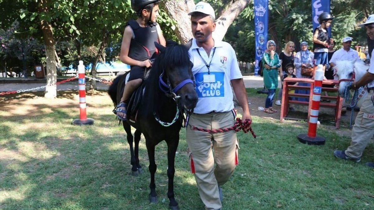 Hatay Büyükşehir Belediyesi (HBB) ve Türkiye Jokey Kulübü (TJK) işbirliği ile hazırlanan ‘Pony Club Şehrimize Geliyor’ etkinliği kapsamında Hatay’a gelen Pony cinsi atlar, Antakya Atatürk Parkı’nda çocuklarla bir araya geldi. Uzman Jokeyler eşliğinde atlara binen çocuklar eğlenceli bir etkinlikte yer alırken aileleri de büyük mutluluk yaşadı.Çocuklara hayvan sevgisi aşılamak amacıyla gerçekleştirilen etkinliğe yoğun ilgi gösteren minik hayvan severler hem atları yakından görmenin hemde ve atlara binerek gezinti yapmanın mutluluğunu doyasıya yaşadı.