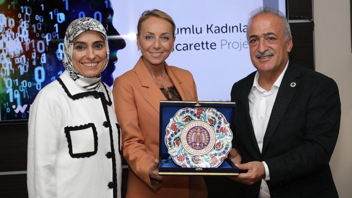 Bu kapsamda Atatürk Üniversitesi Rektörü Prof. Dr. Ömer Çomaklı, AK Parti Erzurum Milletvekili Zehra Taşkesenlioğlu Ban ve Teknolojide Kadın Derneği (WTECH) Yönetim Kurulu Başkanı Zehra Öney ile bir araya gelerek Erzurumlu Kadınlar E-ticaret Projesi ile ilgili fikir alışverişinde bulundu.