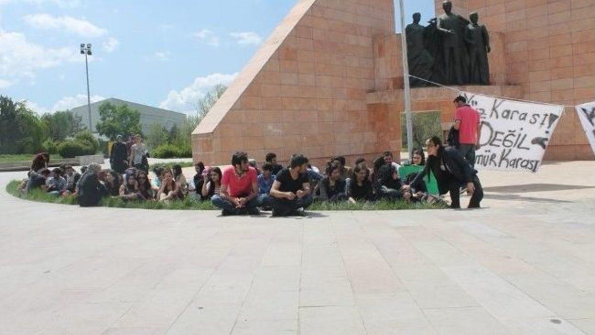 Manisa’nın Soma ilçesinde meydana gelen olay nedeniyle gerçekleştirilen eylemler Atatürk Üniversitesi’nde de bugün devam etti.Atatürk Üniversitesi Bilim Anıtı önünde saat 13.30’da başlayan eylem 2 saat boyunca sürdü. Eyleme katılan öğrenciler yüzlerine kömür sürerek oturma eylemini gerçekleştirdiler. Ayrıca eylem yapılan yere çiçekler, kömür ve baret bırakıldı.Eylem dualar okunarak Saygı duruşunda bulunulması olaysız bir şekilde sona erdi.