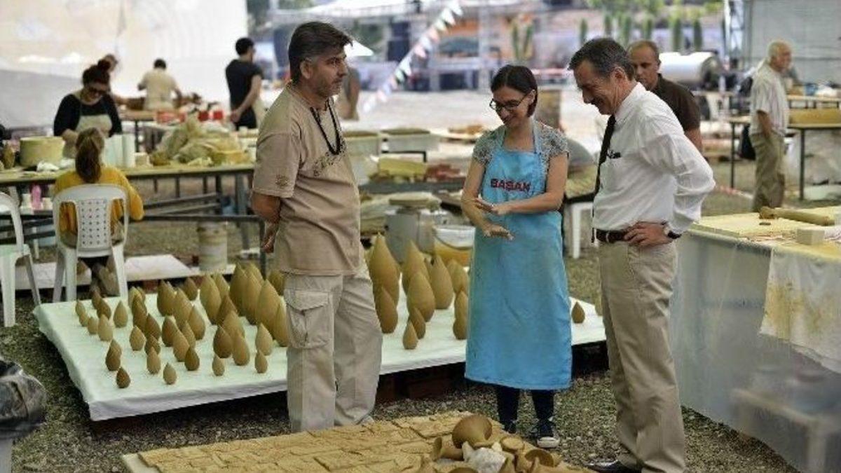 Tepebaşı Belediyesi’nin ev sahipliğinin yaptığı 8. Uluslararası Eskişehir Pişmiş Toprak Sempozyumu tüm hızıyla sürerken, sempozyum alanına gelen Tepebaşı Belediye Başkanı Dt. Ahmet Ataç, sanatçıların yaptığı çalışmalar hakkında bilgi aldı.Sempozyumda bir haftanın geride kaldığını belirten Başkan Ataç, sanatçıların birbirinden güzel eserlerinin yavaş yavaş kendisini gösterdiğini söyledi. Ataç, “Bu yıl yine kentimiz çok önemli eserler kazanacak. Pişmiş toprağın her anlamda büyük önem taşıdığı Eskişehir, kent belleği ve kent kültürü açısından çok değerli günler geçiriyor” dedi.Başkan Ataç daha sonra sempozyum anısına hazırlanan esere imzasını attı.
