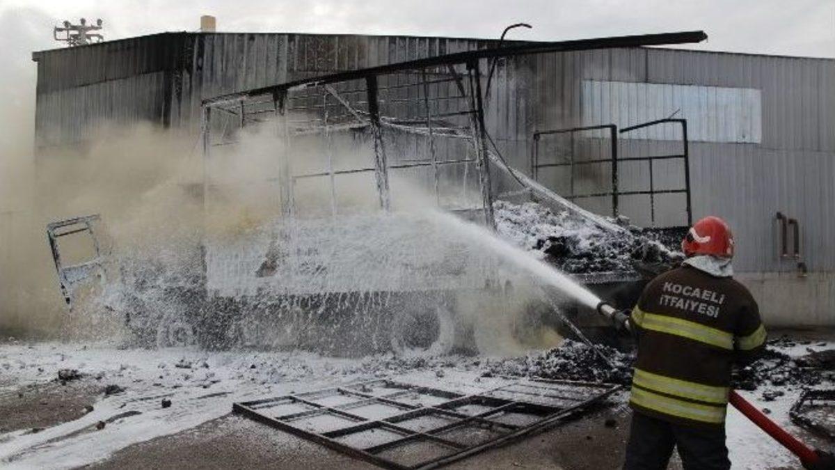 Kocaeli’nin Kartepe ilçesi Köseköy Sanayi Sitesi’nde park halindeki atık yüklü kamyon alev alev yandı.Kartepe Köseköy Sanayi Sitesi’nde park halinde bulunan atık yüklü bir kamyon alev alev yandı. Alınan bilgiye göre, Kartepe Belediyesi eski başkanı Şükrü Karabalık’ın ağabeyi Nazif Karabalık’a ait olan 41 HE 177 plakalı atık yüklü kamyon aniden yanmaya başladı. Sanayi sitesinde bulunan bir atık fabrikasının önündeki kamyonda başlayan yangını gören çevredeki vatandaşlar durumu itfaiye ekiplerine haber verdi. Rüzgarın da etkisiyle alevler kısa sürede bütün kamyonu sardı. Olay yerine gelen itfaiye ekipleri yangına müdahalede bulunarak alevleri kontrol altına aldı. Yaklaşık yarım saat süren müdahalelerin ardından yangın kontrol altına alınarak söndürüldü. Yangında fabrikada da maddi hasar meydana gelirken tamamen yanan kamyon kullanılamaz hale geldi. Polis ve itfaiye ekipleri yangınla ilgili soruşturma başlattı.