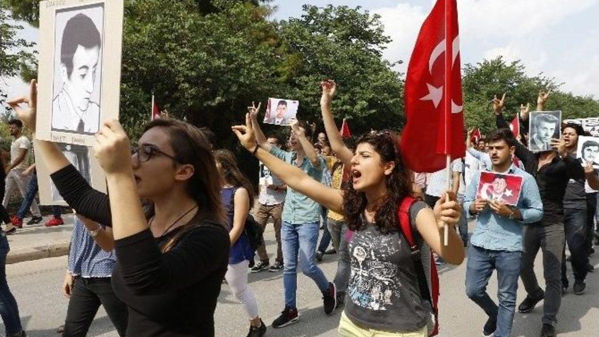 Akdeniz Üniversitesi (AÜ) öğrencisi bir grup, 15 temmuz darbe girişimini lanetlemek ve Şehit Ömer Halisdemir’i anmak için yürüyüşü düzenledi. Yürüyüşün ardından kafeteryaların bulunduğu bölgede İstiklal Marşı okunması sırasında ayağa kalkmayan üç öğrencinin ise gözaltına alındığı bildirildi.Akdeniz Üniversitesi’de yaklaşık 100 kişilik öğrenci grubu Şehit Astsubay Ömer Halisdemir’i anmak ve 15 Temmuz darbe girişimini lanetlemek üzere Yakut çarşısından Olbia Çarşısı’na kadar yürüdü. Ellerinde Türk bayrakları ve Şehit Halisdemir’in fotoğrafının bulunduğu dövizleri taşıyan öğrenciler yürüyüş süresince sık sık şehitler anısına sloganlar attı. Kız öğrencilerin de eşlik ettiği yürüyüş Olbia Çarşısında sona erdi. Burada grup üyeleri İstiklal Marşı okumak için alanda bulunan öğrencileri saygı duruşu için ayağa kalkmaya davet etti ve kafelerde oturan öğrencilerin de ayağa kalkmasının ardından İstiklal Marşı okundu.Yürüyüş amaçlarının darbe girişimini lanetlemek ve Şehit Ömer Halisdemir başta olmak üzere şehitleri anmak olduğunu belirten Ülkü Ocakları Antalya İl Başkanı Alperen Tuğrul Küreşoğlu, "TBMM’yi bombalayacak kadar gözleri dönen ihanet şebekesine karşı demokrasinin ve hukuk devletinin yanında yer aldığımızı ifade ediyoruz. Darbeyi durduran ve püskürten şehitlerimizi unutmamaya kararlıyız. İhanetin alnına mızrak olup saplanan Kahraman Astsubay Şehit Ömer Halisdemir biz nefes aldığımız sürece anılacaktır" dedi.Yürüyüşün ardından, İstiklal Marşı okunduğu sırada ayağa kalkamadıkları tespit edilen 3 kişinin Antalya Cumhuriyet Savcılığı talimatıyla gözaltına alındığı öğrenildi.