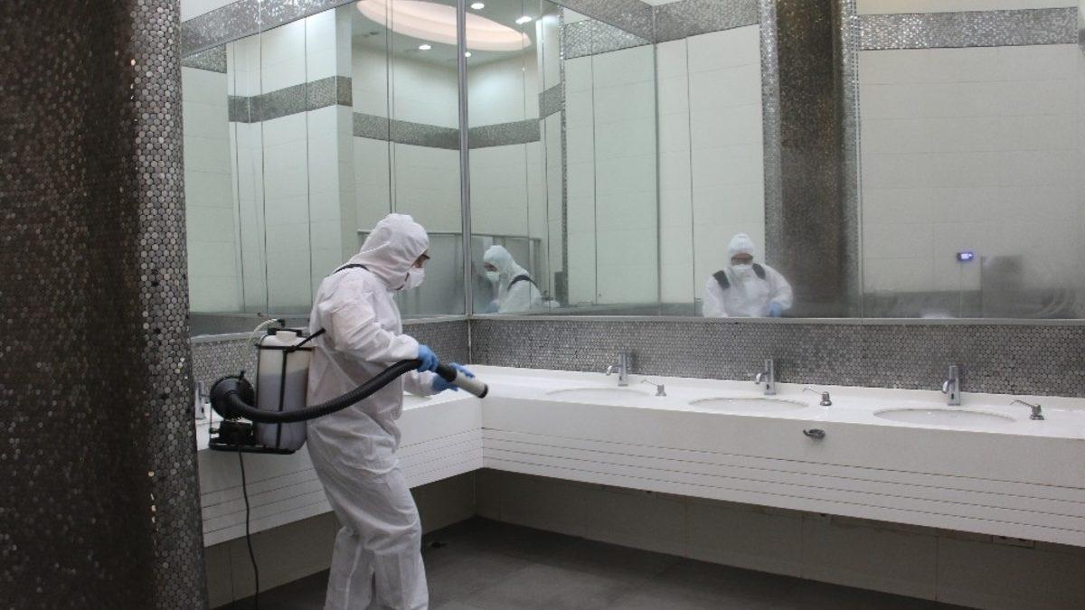Ankara’nın en büyük alışveriş merkezlerinden olan Nata Vega Outlet’de ziyaretçilerin toplu kullandığı alanlar dezenfekte edildi.
