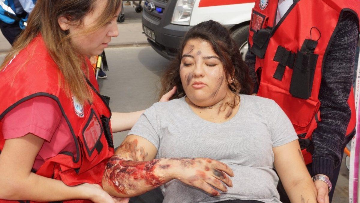 Aydın Kadın Doğum ve Çocuk Hastalıkları Hastanesi’nde gerçekleştirilen tatbikat, gerçeği aratmadı. Başarıyla geçen tatbikatta, senaryo gereği yangın ve patlama olurken yaralanan 20 kişi kurtarıldı.