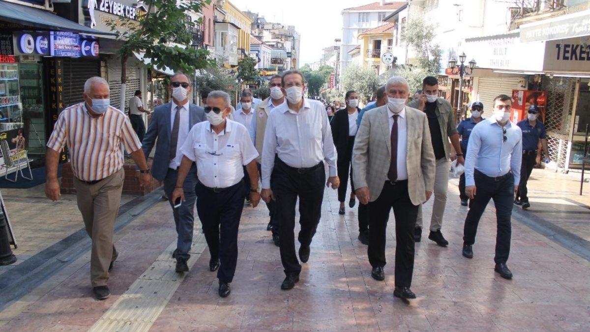 İçişleri Bakanlığı genelgesi ile 81 ilde eş zamanlı olarak en yoğun korona denetimi Aydın’da da gerçekleştirildi. Aydın Vali Yardımcısı Ömer Faruk Günay ve Efeler Belediye Başkanı Mehmet Fatih Atay, beraberindeki heyet ile birlikte Sevgi Yolu üzerinde bulunan gıda işletmelerini denetledi. Lokanta, aperatif ve kahvehaneleri gezen denetim ekipleri iş yerlerinin yönetmeliğe uygunluğunu denetlerken işveren ve çalışanların maske takma konusunda da uyarılarda bulundu. Özellikle lokantalardaki masaların sosyal mesafeye uygunluğunu denetleyen ekipler, iş yerlerinde ateş ölçümü ve dezenfektan kontrollerini gerçekleştirdi.