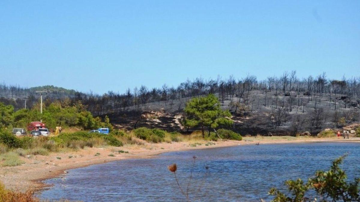 Balıkesir’in Ayvalık ilçesinde, geçtiğimiz 19 Ağustos’ta Şeytan Sofrası eteklerindeki Tımarhane Adası sırtlarındaki ormanlık alanda çıkan yangının ardından bugün bir yangın daha çıktı.Alınan bilgiye göre; saat 15.00 sıralarında çıkan yangın yaklaşık 3 dönüm alanda etkili oldu.Balıkesir Orman Bölge Müdürlüğü ile Balıkesir Büyükşehir Belediyesi İtfaiye Müdürlüğü bünyesindeki Ayvalık İtfaiye Grup Amirliği’ne bağlı 4 arazöz, 2 iş makinesi ile müdahale edildi.Ekiplerin hummalı çalışması sonrasında yangın kısa sürede söndürüldü.Yangının neden çıktığı ise araştırılıyor.Konuyla ilgili muhabirimize açıklamalarda bulunan Ayvalık Kaymakamı Namık Kemal Nazlı, 2 gün önce yanan ormanda çıkan yangın sonrasında bölgede soğutma çalışmaları yapan ekiplerin anında müdahalesi sonrasında yangın hemen söndürülmesinden duyduğu memnuniyeti ifade ederek, vatandaşları ormanlık alanlarda gezerken özellikle sigara izmariti ve piknik ateşi yakmamaları konusunda uyardı.