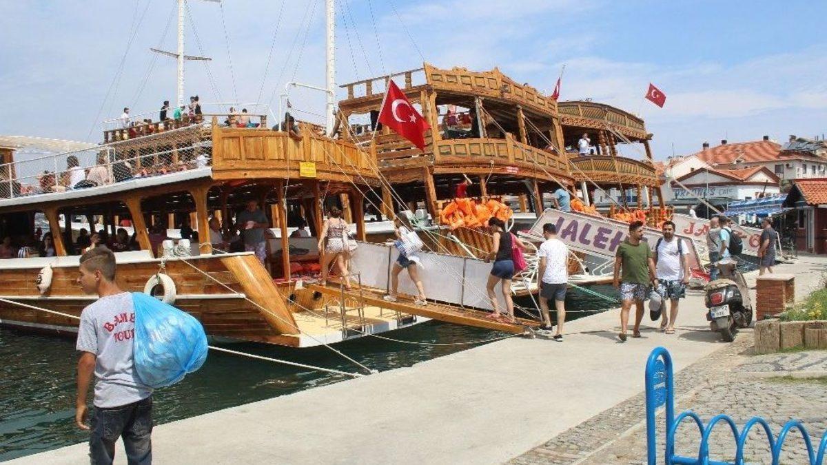 Balıkesir’in Ayvalık ilçesini ziyaret eden tatilcilerin adeta olmazsa olmazı olarak kabul edilen ada turlarına binlerce insan adeta akın ediyor.Ayvalık’ta, Ramazan Bayramı nedeniyle 3 günlük tatil fırsatı yakalayan binlerce tatilci, ilçenin Ege Denizi’ndeki irili ufaklı 22 adalarına yönelik günlük gezi turları düzenleyen teknelere akın etti.Türkiye’nin coğrafi olarak en büyük doğal parkı konumundaki Ayvalık adaları Tabiat Parkı bünyesindeki irili ufaklı 22 adaya yönelik gezilerin bayram süresine ve sonrasında başlayacak olan turizm sezonunda her gün saat 11.00 ile 19.00 saatleri arasında gerçekleştirildiği öğrenildi.Günü birlik turlarda Ayvalık’ın bakir adaları; Maden, İncirli, Kara Ada, Güneş Adası, Çıplak Ada, Melina, Ortunç Koyu, Pınar adasının adeta birer akvaryum görünümündeki koylarında denize girebilme fırsatı bulan tatilciler, Ayvalık’ın kendine has taze papalina ya da sardalya balığı, salata ve karpuzdan oluşan öğle yemeği ikramıyla doyasıya karınlarını doyurabiliyor.Ayvalık Deniz Taşıyıcıları Kooperatifi’ bünyesindeki 24 adet ortam 450 kişilik büyük gezi tekneleriyle gerçekleşen adalar turlarında, doyumsuz eğlencenin bedeli ise sadece 40 liraHer yıl yaz sezonlarında günlük ortalama 3 ile 4 bin kişinin adalara götürülmesine karşın bu yıl sadece Ramazan Bayramı ilk ve ikinci gününde, günlük ortalama 5 bin kişi olmak üzere 10 bin tatilci Ayvalık adalarındaki akvaryum görünümlü koylarında denize girme ve teknelerdeki animasyon ve canlı müzik persformanslarıyla gönüllerince eğlenebilme fırsatı yakaladı.Konuyla ilgili muhabirimize açıklamalarda bulunan Türkiye’de ilk kez adalar turu sektörünü başlatmasıyla tanınan Eşref Jale, "Bu yıl 3 günlük Ramazan Bayramı tatili turizmciler için adeta can simidi oldu. Bu bayram gezi teknelerimizdeki doluluk oranı ziyadesiyle çok fazla. Ayvalık çok kalabalık. İyi iş yaptık. Her şey çok güzel. İnşallah devamı gelir" dedi.Düzenledikleri turlarda öğle yemeği olarak balık verdiklerini kaydeden Jale, "Bu yemeklerde sınır yok. Her misafirimiz doyasıya kadar balık yiyebiliyor. Mevsim meyveleri ikram ediyoruz. Kişi başı 40 lira olan turlarımızda, 12 yaşındaki çocuklardan yarım bile bedeli alıyoruz" ifadelerini kullandı.Bayram öncesinde gezi turlarından hiç memnun olmadıklarını belirten Eşref Jale, "Bayram öncesinde talep çok kötüydü. Ama bu bayram bizim moralimizi yükseltti" diye konuştu.Gezi tekneleri sahiplerinden Özay Cömert de, Ramazan Bayramı’nın başlamasıyla birlikte çok ciddi bir müşteri akınıyla karşılaştıklarını kaydederek, “İnşallah 24 Haziran’da yapılacak seçimlerin ardından da bu yoğunluk sürecektir. Bu bayram, ekonomik anlamda yüzümüzü güldürdü. Herkes müşteri sayısını arttırabilmenin savaşını veriyor.” dedi.Gezi teknesi sahiplerinden Mehmet Pekinli de bu bayram gezi teknelerine yönelik tatilcilerin gösterdiği ilginin beklediklerinden çok daha fazla olduğunu savunarak, “Allah bin bereket versin. Umduğumuzdan da çok yüksek bir talep var. Bu yoğunluk ekonomik anlamda son derece durgun geçen kış mevsiminin ardından yüzümüzü güldürdü” ifadelerini kullandı.Gülşah Batur adlı genç bir tatilci ise Ayvalık’ta ilk kez bir gezi teknesi ile adalar turuna katılacağını ve son derece heyecanlı olduğunu belirterek, “Daha önce arkadaşlarım bu turlara defalarca katılmıştı ve her defasında da çok güzel anlar yaşadıklarını anlatmışlardı. Bugün bende bu turlara katılacağım. Açıkçası tüm gün denizde olup, animasyonlar ve akvaryum gibi pırı pırıl koylarda yüzeceğim için çok heyecanlanıyorum” diye konuştu.Gezi tekneleri acentesi sahibi Yasemin Zorlu, bayram süresince çok yoğun talep almaktan duydukları memnuniyeti ifade ederek, “Bayramın dışında, turizm sezonunda da Ayvalık’a gelen tatilcilerimizi mutlaka yat turlarımıza bekliyoruz. Geçmiş bayramlara nazaran yoğunlukta sanki biraz düşüşün olduğunu düşünüyorum. Ama daha da iyi olacağına inanıyorum” şeklinde konuştu.