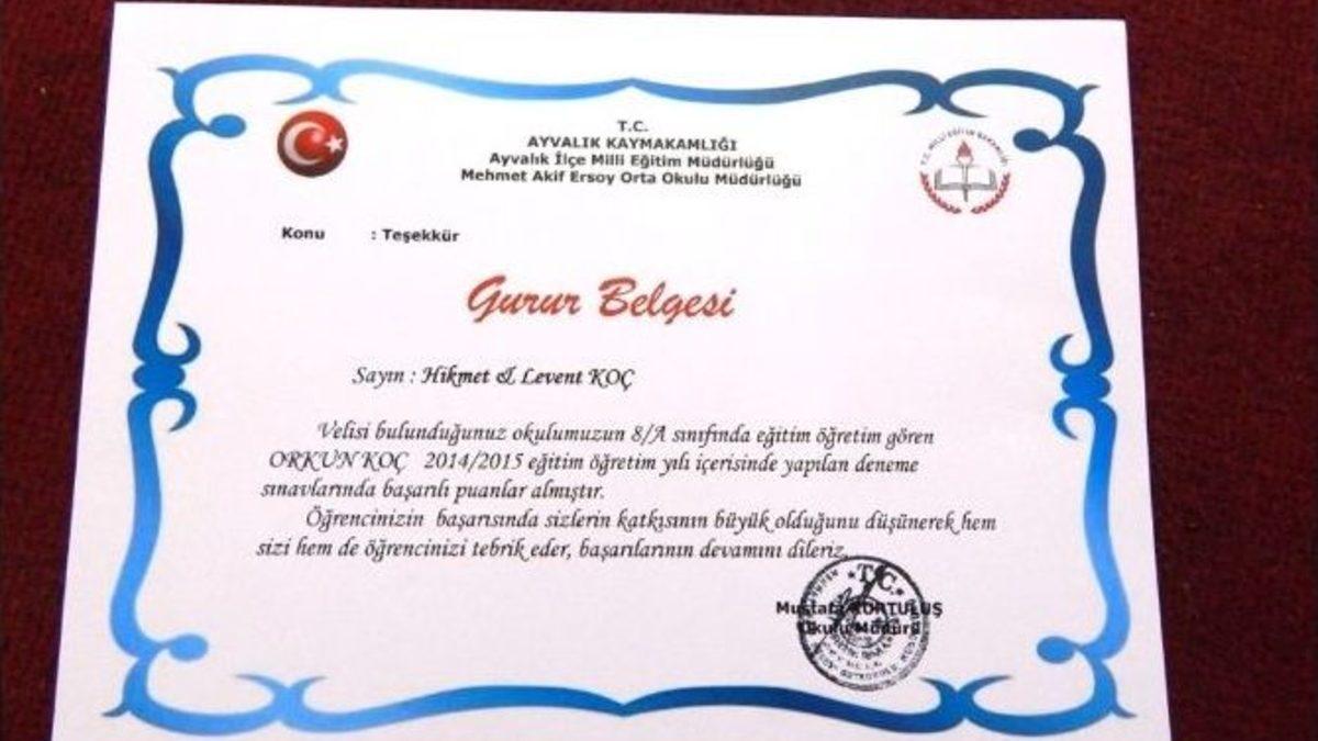 Balıkesir’in Ayvalık ilçesinin eğitim alanında bir ilk yaşandı.Mehmet Akif Ersoy Ortaokulunda gerçekleşen etkinlikle okul idaresi ve öğretmen kadrosu adeta yeni bir akımın öncülüğünü başlatarak, şimdiye kadar öğrencilerinin aldıkları başarılarla gururlanan velilere, kendi öğrencilerinin ellerinden ‘gurur belgesi’ almanın ayrıcalığını yaşattı.Bu kapsamda; Mehmet Akif Ersoy Ortaokulu yönetimi tertipledikleri, Gurur Çayı adını taşıyan etkinlikte öğretmenleri velilerle ve öğrencilerle buluşturdu.Balıkesir’de ilk kez gerçekleştirilen etkinlikle hem okul-aile kaynaşmasını, hem de TEOG sınavı öncesi öğrencilere moral kazandırmayı amaçlayan okul idaresi, bu tür etkinliklerin süreceğinin de müjdesini vermeyi ihmal etmedi.İlçe Milli Eğitim Müdürü Erkan Bilen’in de katıldığı etkinlikte, 8. sınıfta okumakta olan ve ilçede gerçekleştirilen yarışmalarda, derslerde deneme sınavlarında ve 1. dönem yapılan TEOG sınavında üstün başarı elde eden öğrenciler ve bu öğrencilerin velilerinin de davetli olması dikkat çekti.Meyve suyu ve kurabiye ikramının yapıldığı kokteyle tam kadro katılan öğretmenler, öğrenci velileriyle sohbet etme imkânı bulurken, etkinlikte konuşan Mehmet Akif Ersoy Ortaokulu Müdürü Mustafa Kurtuluş, başarının her zaman ödüllendirilmesi gerektiğini belirtti.Öğrenci, veli ve okul arasındaki iletişimin tam olarak sağlanması ve bu mekanizmanın iyi bir şekilde çalıştırılması halinde başarının kendiliğinden geleceğini vurgulayan Kurtuluş, öğrencilerin başarısında büyük pay sahibi olan öğrenci velilerine teşekkür etmek amacıyla böyle bir etkinlik düzenlendiğini, bu tür çalışmaların artarak devam edeceğini belirtti.Etkinlikte konuşan İlçe Milli Eğitim Müdürü Erkan Bilen ise, Balıkesir’de ilk kez düzenlenen bu güzel çalışmaya katılmaktan duyduğu memnuniyeti ifade ederek, “TEOG sınavı ile ilgili Ayvalık İlçesi’nde tatlı bir rekabet yaşanıyor. Mehmet Akif Ersoy Ortaokulu’muzun da bu tatlı rekabette hak ettiği yere geleceğine inanıyorum” diyerek, öğrencilerin bu günlere ulaşmasında emeği geçen öğretmenlere teşekkür etmeyi de ihmal etmedi.Konuşmaların ardından öğrencilerin velileri tek tek sahneye davet edilerek, okul idaresi tarafından hazırlanan gurur belgeleri takdim edildi.Belgeleri alan velilerin beklemedikleri sürpriz nedeniyle yaşadıkları şaşkınlık yüzlerinden belli olurken, veliler; öğrencilerinin başarılarından dolayı daha önce böyle ödüllendirilmediklerini bu etkinliğin diğer eğitim kurumlarına da örnek olmasını ve gelenekselleşmesini temenni etmeleri de dikkat çekti.Neşeli bir havada gerçekleşen etkinlikten memnun ayrılan öğrenci velileri, okul idaresine ve öğretmenlere de teşekkür etti.