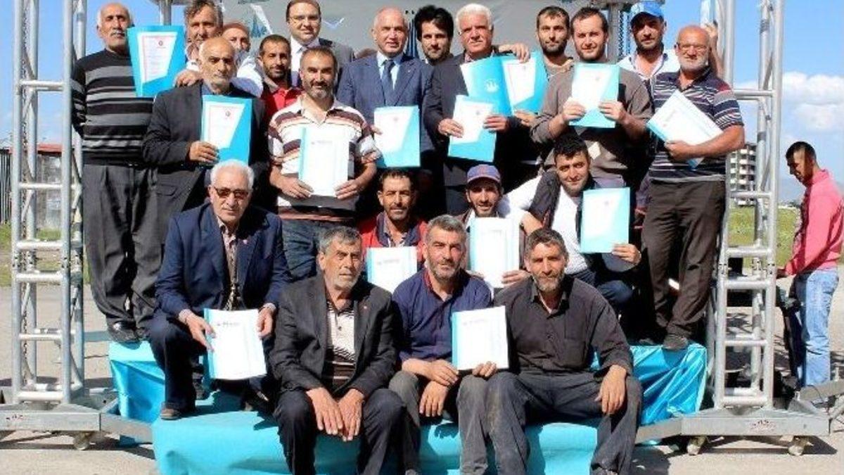 Aziziye’de 20 yıldır başta Maliye ve SGK olmak üzere, çeşitli kurumlar tarafından koyulan şerhlerden dolayı tapularını almayan işyeri, konut ve arsa sahibi yaklaşık 150 kişiye tapuları törenle teslim edildi.Aziziye Belediye Başkanı Muhammed Cevdet Orhan, “Çözüm odaklı hizmet vizyonumuzun önemli bir ayağını sorunların yerinde tespiti ve çözümü oluşturmaktadır. Biz canla başla hemşehrilerimize sorunları çözülmüş, yaşanabilir bir ilçe oluşturmak için çalışıyoruz.” dedi.Başkan Orhan, ilçede başta icra ve şerh sorunu olmak üzere, çeşitli nedenlerden dolayı yaklaşık 20 yıldır tapularını alamayan işyeri, mesken ve arsa sahiplerine düzenlenen törenle tapularını verdi. Yaklaşık 20 yıl önce satışı yapılan Ilıca Sanayi sitesindeki dükkanlar, Öz Efe ve Bozkurtlar Yapı Kooperatifi’ndeki konutlar ve yine Ilıca ile Dadaşkent’teki bazı arsalar, belediyenin başta Maliye ve SGK borçları olmak üzere çeşitli kurumların şerhlerinden dolayı tapularını alamıyorlardı. Başkan Orhan’ın talimatıyla Aziziye Belediyesi’ndeki ilgili birimler ile belediye encümenlerinin ve ilçe Tapu Müdürlüğü’nün koordineli çalışması sonucunda sorun çözüldü ve 150’ye yakın hak sahibi tapusuna kavuştu.22. Dönem Erzurum Milletvekili Prof. Dr. Mustafa Ilıcalı, Aziziye Esnaf ve Sanatkar Odaları Birliği Başkanı Selim Alak, Ilıca Mahalle Muhtarı Timur Meral ve hak sahiplerinin katıldığı tapu dağıtım töreni Ilıca’da gerçekleştirildi.SÖZLERİMİZİ BİRER BİRER TUTUYORUZTörende konuşan Başkan Orhan, “Seçim dönemi yaptığımız toplantılarda ve ziyaretlerde hemşehrilerimiz öncelikli sorunlarından birisinin de tapu olduğunu aktarmışlardı. Biz ilçemizin sorunlarını birer birer çözeceğimizi taahhüt ederek göreve talip olmuştuk. Hemşehrilerimizin teveccühüne ve güvenine layık olmak adına sorunları çözüme kavuşturmanın mutluluğunu yaşıyoruz.” dedi.Tapu sahibi olmadan alınan arsanın ve arsa üzerindeki mülkün kullanılmasının her alanda önemli sıkıntılara yol açtığına işaret eden Başkan Orhan, sorunun çözülmesiyle Ilıca Sanayi Sitesi, Bozkurtlar ve Öz Efe Yapı Kooperatifleri ile yine bazı bölgelerdeki arsa sahiplerinin rahat bir nefes aldığını kaydetti.20 YILLIK SORUN ÇÖZÜLDÜYaklaşık 20 yıllık tapu sorununa parmak bastıklarına işaret eden Başkan Orhan, “Parasını yıllar önce ödemiş olmasına rağmen, tapusunu alamayan hemşehrilerimiz ve esnaflarımız tapularına kavuştular. İlk etapta 150 civarında hemşehrimiz tapusu aldı. İlçemizde birçok hemşehrimizin tapusunun olmadığını biliyoruz. Bu vatandaşlarımızın mağduriyetlerinin giderilmesi noktasında çalışmalarımız sürüyor. Sorunun çözümü için gecesini gündüzüne katan ekip arkadaşlarımıza, encümen üyelerimize Tapu Müdürlüğü’ne teşekkür ediyorum. Tapuların ilçemiz ve hemşehrilerimiz için hayırlı olmasını diliyorum” diye konuştu.ILICALI: HİZMETTE SAMİMİYET BUDUR22. dönem Erzurum Milletvekili Prof. Dr. Mustafa Ilıcalı ise konuşmasına, Başkan Muhammed Cevdet Orhan’ı başarılarından dolayı kutlayarak başladı. İlçenin kangren haline gelmiş önemli bir sorununun çözüldüğüne şahitlik etmesinin kendisini ziyadesiyle mutlu ettiğini dile getiren Ilıcalı, “Bir yıl önce hizmete başlayan belediye başkanımız, 20 yıla aşkın sorunu çözüme kavuşturuyor. Bu hizmette samimiyetin, azmin ve fedakarlığın göstergesidir. Ben kendisini ve ekip arkadaşlarını yürekten kutluyor, başarılarının devamını diliyorum. Tapuların değerli hemşehrilerimiz için hayırlı olmasını temenni ediyorum.” diye konuştu.ALAK: ESNAFIMIZ RAHAT BİR NEFES ALDITapu sahipleri adına konuşan Aziziye Esnaf ve Sanatkarlar Odası Başkanı Selim Alak da, esnafın rahat bir nefes aldığına vurgu yaparak, “20 yıllık bir sorunumuz daha çözüme kavuştu. Esnafımız parasını ödeyip hak sahibi olduğu halde işyeriyle ilgili herhangi bir tasarrufta bulunamıyor, kredi ve satış işlemlerinde sorun yaşıyordu. Göreve başlarken sorunun çözümü noktasında hassasiyet gösteren belediye başkanımız bizleri rahatlattı. Aziziye halkı adına, esnaflarımız adına kendisine teşekkür ediyoruz.” şeklinde konuştu.Konuşmaların ardından hak sahiplerine tapuları Aziziye Belediye Başkanı Muhammed Cevdet Orhan ile 22. Dönem Erzurum Milletvekili Prof. Dr. Mustafa Ilıcalı tarafından teslim edildi.