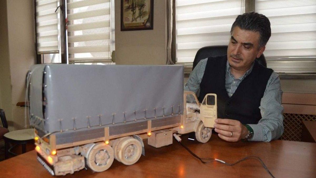 Trabzon’da yaşayan Rahmi Aydurmuş, babasının hatıralarını atık çöplerden yaptığı maket kamyonda yaşatıyor.Trabzon’da 1975 yılında satın aldığı kamyonetle İran’a transit taşımacılık yapan Nihat Aydurmuş, Irak-İran savaşı çıktıktan sonra yurt içinde çalışmaya devam etti. Kamyonetini evladı gibi seven Aydurmuş, bir süre sonra hastalanınca kamyonetini satmak zorunda kaldı. Ankara’dan gelen bir vatandaşa kamyoneti satan Aydurmuş, rüyalarında kamyonetini görmeye başladı. Son bir kez kamyonetini görmek isteyen Aydurmuş, bir gün komşusunun evine gelerek ’Aşağıda bir kamyonet var, sizin kamyonete benziyor’ demesiyle 2 yıl sonra tekrar kamyonetini gördü. Evinde ailesiyle birlikte geçirdiği zamanlarda da hep kamyonetinden bahseden Aydurmuş, hastalığının ilerlemesiyle hayatını kaybetti. Oğlu Rahmi Aydurmuş, babasının hatırasını yaşatmak için aynı model bir maket kamyon almak istedi. İnternette 12 bin liraya maket kamyonetler bulan Rahmi Aydurmuş, kendi maket kamyonunu yapmaya karar verdi. Kimseden yardım almadan ve çivi kullanmadan aynı model kamyoneti yapmaya başlayan Aydurmuş, çocuklarının oyuncaklarından da yararlandı. 8 ayın sonunda kamyonetin orijinal ile birebir aynısını yapan Aydurmuş, maketi ahşap ve atık çöplerden yaptığını söyledi.Babasının kamyonu sattıktan sonra çok üzüldüğünü, bu üzüntüsü yüzünden hastalanıp kısa bir süre sonra da hayatını kaybettiğini belirten Rahmi Aydurmuş, babasının kamyonunu evladı gibi sevdiğini ve onunda adeta konuştuğunu belirtti. Evdeki sohbetlerde hep kamyon konuşulduğunu ve babasının kamyonu sattıktan sonra üzüntüsünden zaman zaman ağladığına şahit olduğunu belirten Aydurmuş, babasının kamyonuna inanılmaz bir sevgisi olduğunu ifade ederek, “Babam, 1975 yılında satın aldığı kamyonla Trabzon’dan İran’a transit taşımacılığa başladı. 2002 yılına kadar kamyonuyla taşımacılık yaptı. Kamyon, evimizin ekmek teknesi olmuştu. Evimizdeki sohbetlerimiz hep kamyon üzerineydi. Babam evde İran’a gidiş gelişlerinden arabanın parçalarına kadar hep kamyonu konuşurdu. 1987 yılında İran-Irak savaşı nedeniyle babam İran’a taşımacılık işini bıraktı. O tarihten sonra yurt içinde çalışmaya başladı. 2006 yılına kadar çalışmaya devam etti. Ancak 2002 yılında hastalandığında biz de kendisinden arabayı satmasını istedik. Daha sonra arabayı Ankaralı bir kişiye cüzi bir miktara sattı. Kamyonu satmasının ardından aşırı üzüntüye kapıldı. Üzüntüden ellerinde beyaz lekeler çıkmaya başladı. Doktora getirdik, doktor bize bu adama ne oldu böyle dedi. Biz de kendisine bir arabası vardı, onu sattıktan sonra böyle oldu dedik. Hastalandı, çalışamaz vaziyette olduğu için arabayı sattırdık dedik. Babam ciddi üzüntüler yaşadı. Birebir ağladığını gördüm. Nedenini sorunca arabasız kaldım, arabamı çok seviyordum diyordu. Babam bu arabayı evladı gibi seviyordu. Arabayla adeta konuşuyordu” dedi."Kamyonu sattıktan 2 yıl sonra gördü, hıçkıra hıçkıra ağladı"Sattıkları kamyonun tesadüfen oturdukları binaya eşya almak için geldiğini, kamyonu gören babasının hıçkıra hıçkıra ağladığını ifade eden Aydurmuş, “Aradan 2 yıl geçtikten sonra bir komşumuz bize ’Altta bir araba var, sizin arabaya çok benziyor’ dedi. Bunun üzerine babam hemen aşağıya inip baktığında gerçekten sattığı araba kapıda duruyor. Araba 06 plakalı idi ancak bizim arabaydı. Bende o sıra evdeydim, ağlama sesine uyandım, neler oluyor diye aşağı indiğimde baktım ki bizim araba. Yani sattığımız araba babamın üzüntüsüne dayanamayıp evin önüne geldi. Babam arabasını son kez gördükten sonra 6-7 ay sonra da vefat ediyor” şeklinde konuştu."Anısını yaşatmak için maketini yapmaya karar verdim"Babasının uzun yıllar emek verdiği kamyonun anısını yaşatmak için maketini yapmaya karar verdiğini anlatan Aydurmuş, malzemeleri de atık çöplerden kullandığını belirterek, “Babam arkadaşları arasında da sevilen bir sima idi. Bu arabayı araştırarak maketini yapmaya karar verdim. Maketinin bir benzerini internetten buldum, almak istediğimde çok uçuk bir fiyat söylediler kabul etmedim. Elimden bu tür şeyler gelince kendim yapmaya karar verdim. Yaklaşık 8 aylık sürede hiçbir yardım almadan bu hale getirdim. Malzeme olarak limon kasaları, alüminyum parçaları, kürdan, iğne şırıngası, kullanılmayan tava, kola tenekelerinin arka yüzünü kullandım. Hiç çivi kullanmadan tutkalla yaptım. Parayla aldığım malzeme pek olmadı. Hepsini atık çöpten yaptım. İnternetten 12 bin TL’ye bulduğum maket arabadan daha iyi olduğunu düşünüyorum. Keşke babam sağ olsaydı da bunu görebilseydi ama olmadı. Bu bizim hikayemizdi, anımızdı. Babamın kullandığı kamyonda ne varsa paspaslarına varıncaya kadar aynısını birebir yapmaya çalıştım. Tamamen orijinalinin birebirini yaptım. Çevremden, arkadaşlarımdan çok güzel tepkiler aldım. Çocuklarıma dedelerinin bir hatırası olarak saklayacağım. Bize göre bu maketin manevi değeri çok büyük. Satmayı hiç düşünmüyorum” ifadelerini kullandı.
